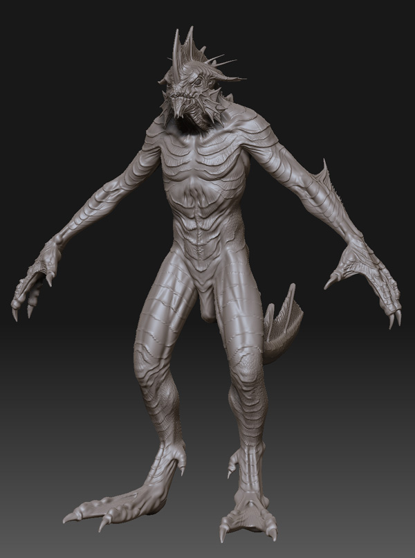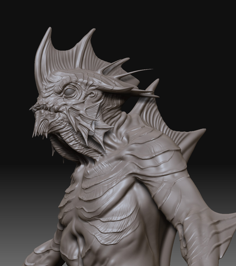 I really dig that layered thing going on on his body. Did you had any special thought behind them? (gills, scales, etc?)