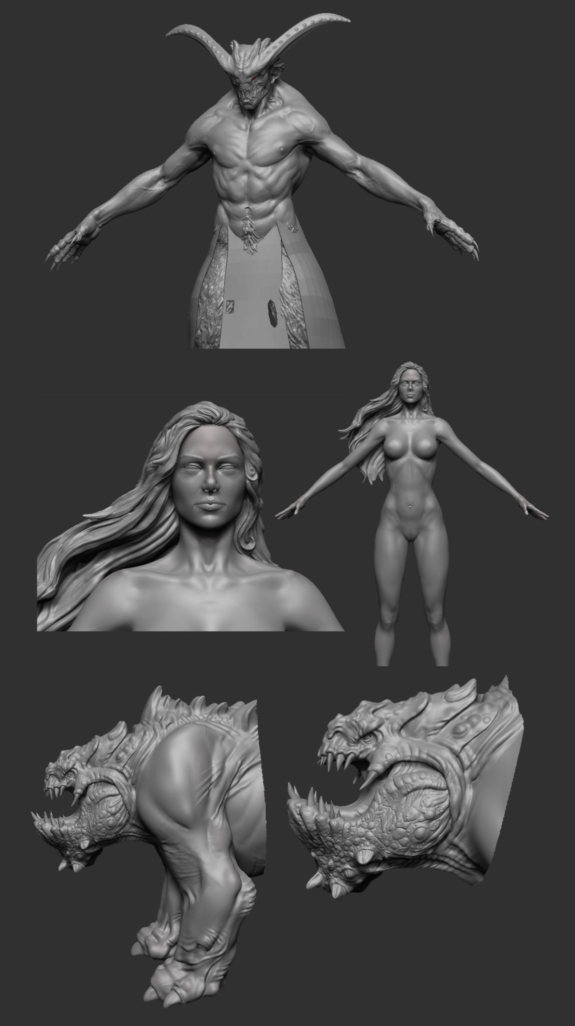 I love the shape of the lady. Really nicely done. The demon and his hound are awesome to.