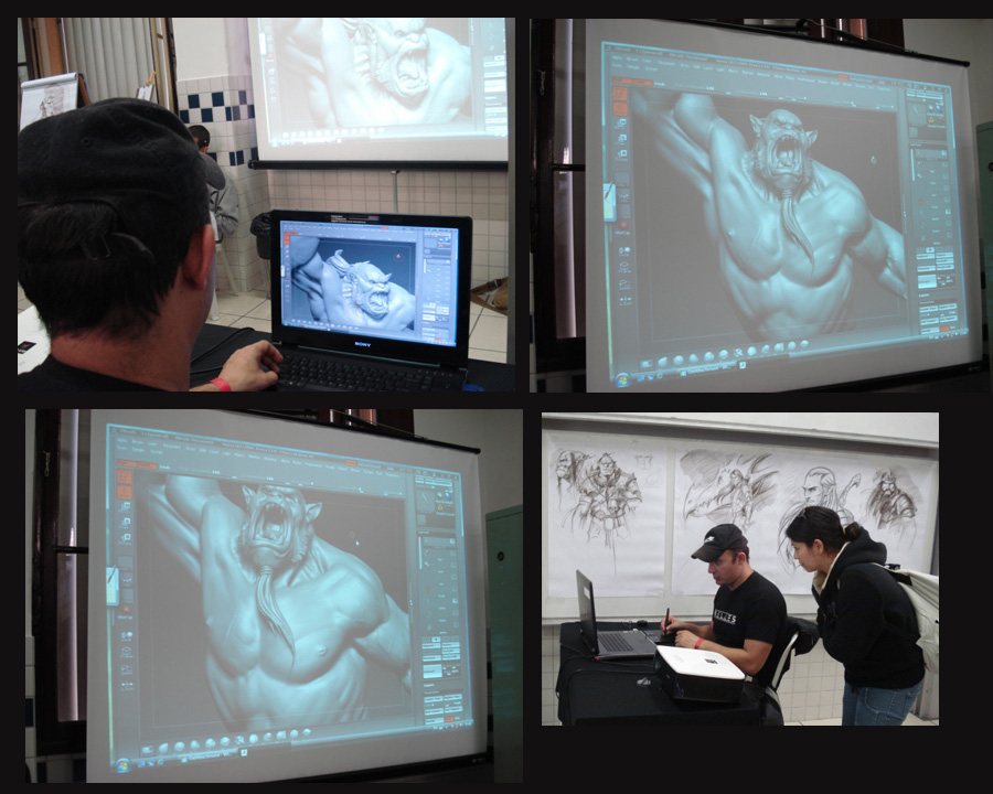 hereās some images of a workshop that i did to Melies School last sunday, you can see the model that im working and some sketchs that i did ( i guess that the Elf was done by Walfrid , just the Orc , the elf with the Dragon and the King was done by me).I will post the model heretoday yet;
