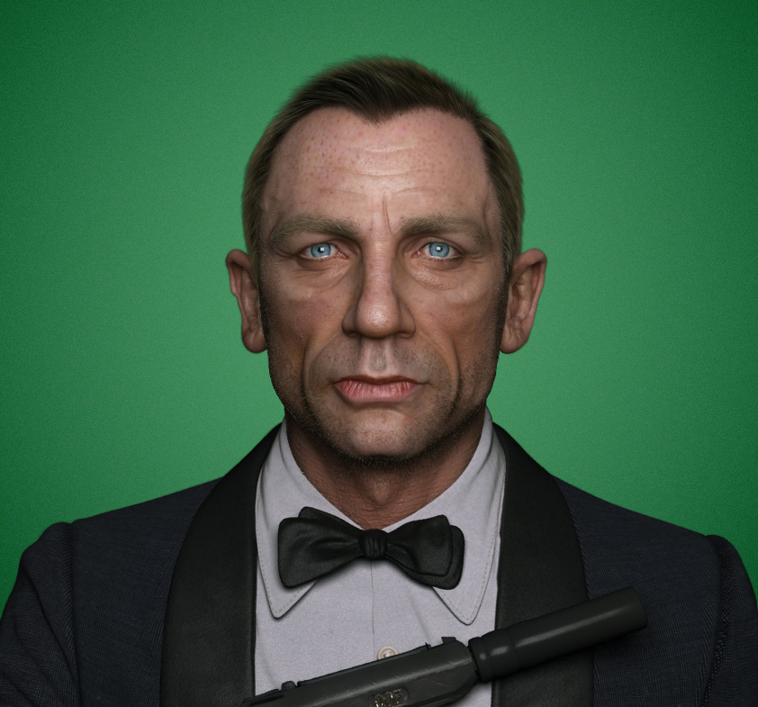 Daniel Craig as James Bond _ Beauty Shot(Final) _ Hey guys, I’m finally done. I improved some parts to get a more convincing and lifelike result. His eyes were the main weak-point of the piece, so I changed eye’s model and color. In the previous one, they looked too glassy,bright and shallow. Facial hair needed to be thiner and denser and barely visible. skin looked dry in some parts so I increased the specular level and changed camera angel a little. Now I can say I’m done with the project. I appreciate those who followed the procedure and helped me to improve the piece by their comments :))