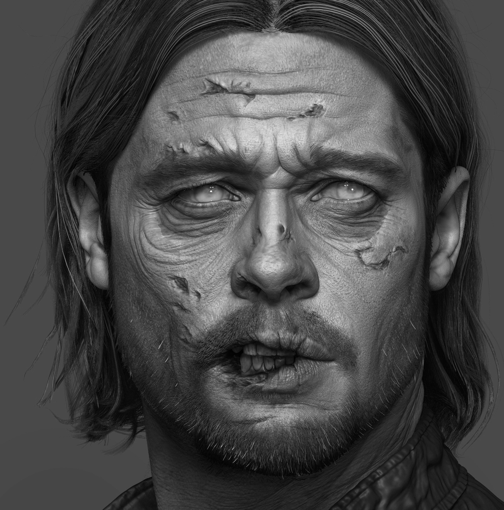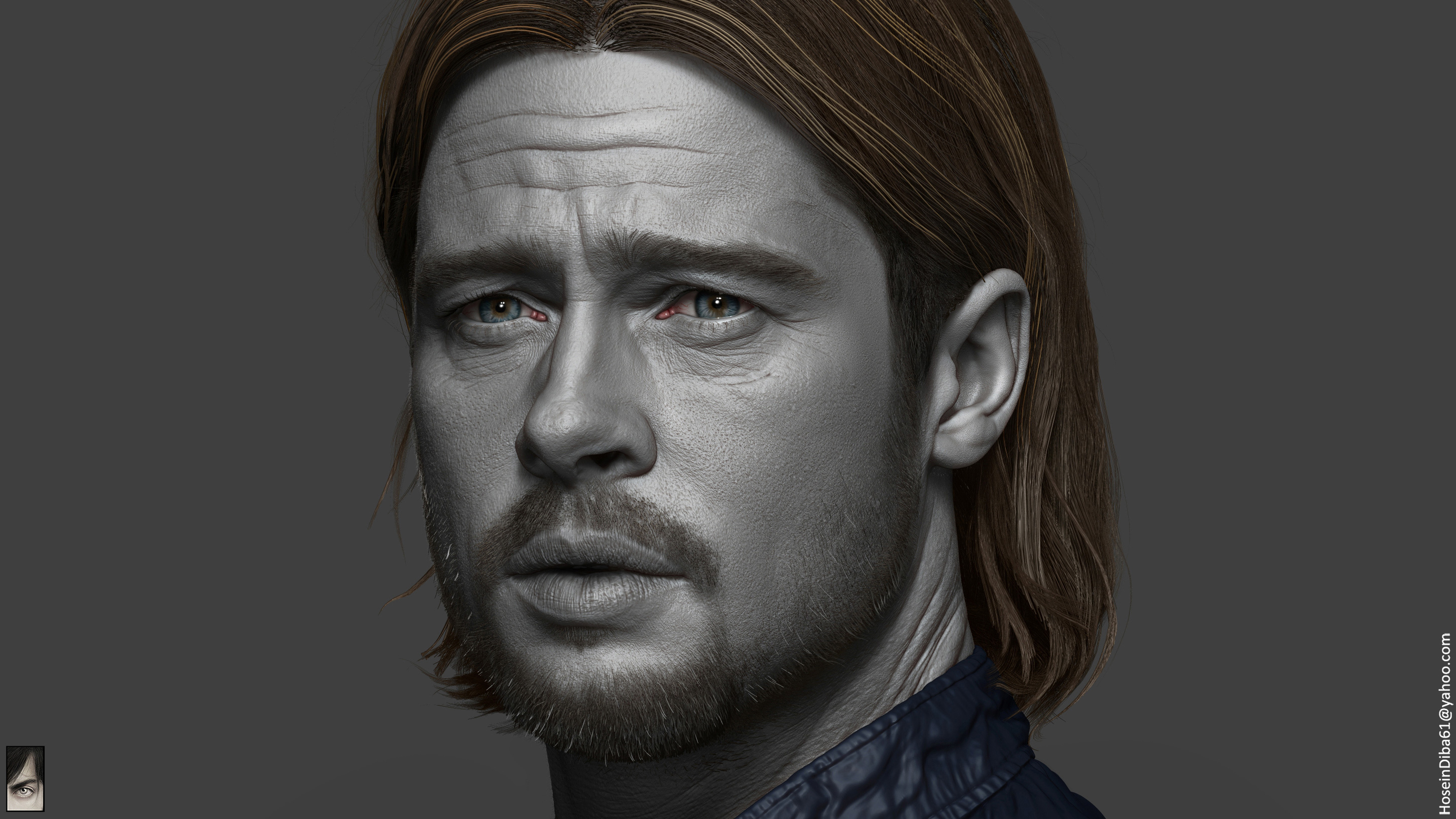 Here is the head sculpt of Brad Pitt I have been working on in my free times. I made a zombie version of him as well, might have been the look if he had turned to a zombie! Hope you like it, cheers