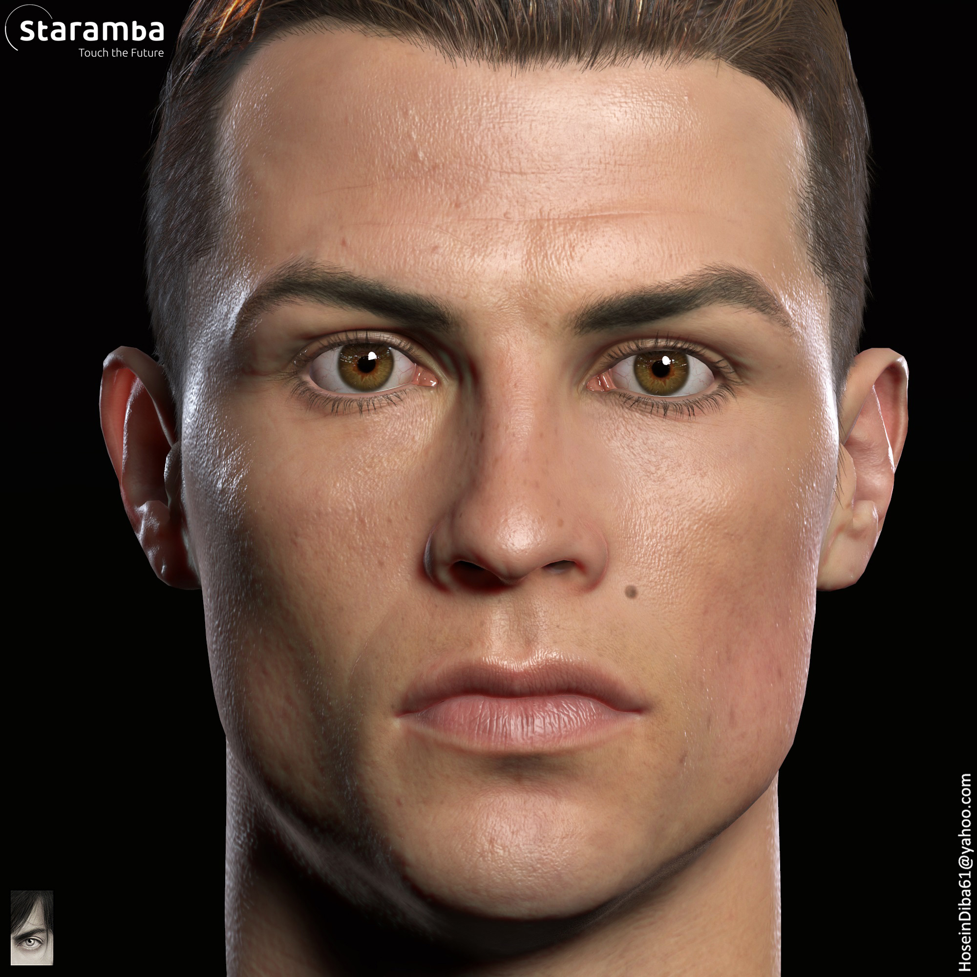 Here is a real-time model of CR 7 I did a while ago for a VR project that Staramba was working on. This is hand sculpted and not based on a scan. I will share more shots soon