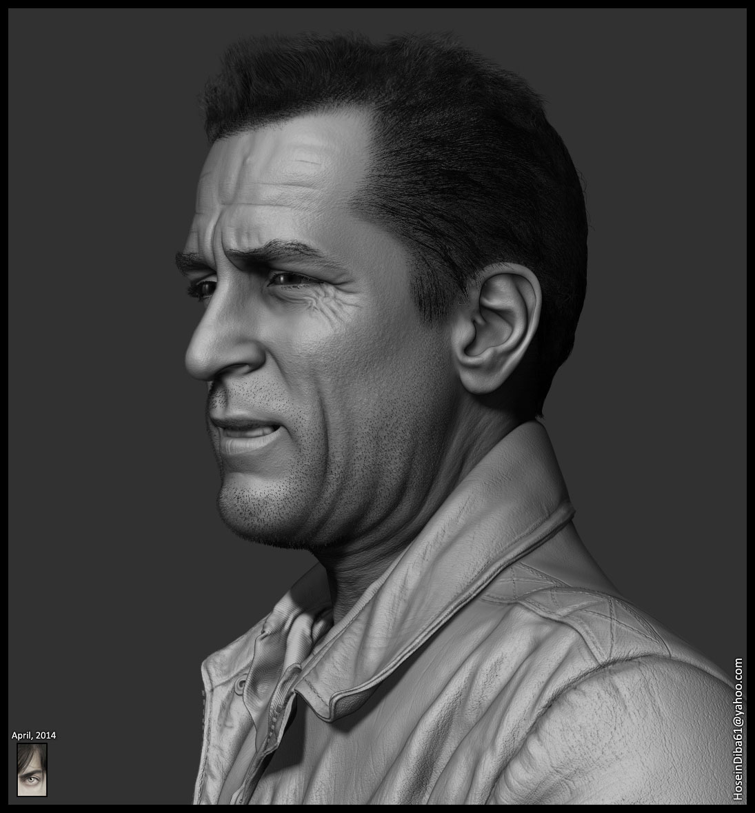 After going back and forth to the reference image and my sculpt, found out some stuff that I had done wrong, like the size of his eyes, nose, jaw, forehead and almost all of the structure of his face, then fixed them and here you can see my process image, from the beginning to the end: