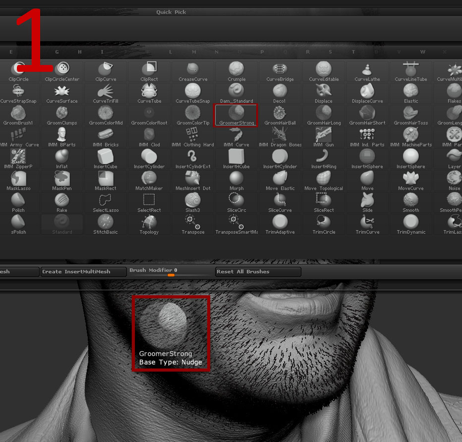 Thanks Cedcrx, I would like to talk about how I work with fibermesh to create hairstyles, the first brush I use to shape the basic shape of hair is Groomer strong(1) with intensity level 10(2), if you go with 100 , It wouldn’t be that cool. An important thing about brushing hair in zbrush is that you should get really close to the place where you want to brush(3), if you do it in distance, hair roots tent to bend and lose their touch to the surface of the head. After getting the basic hair style, I use 3 other brushes more than the rest, Groom lengthen, Groom spike, Groom turbulence(4). Creating short hair works for me this way but I have still some trouble creating Long hair, Specially those of women that have lots of complex stuff, As I told you, it is not a difficult thing to work with fibermesh, hope you find it useful, cheers:
