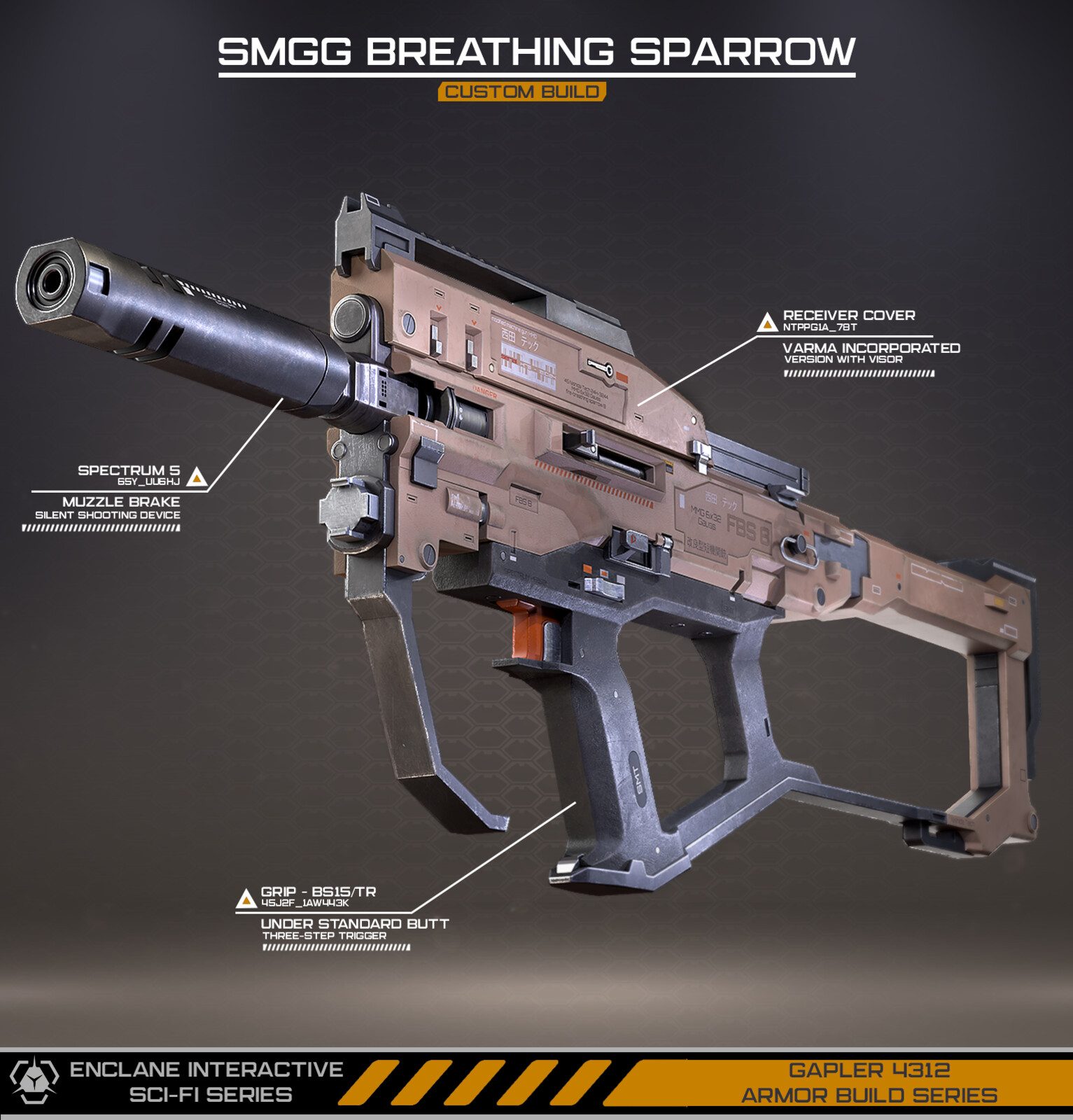Modified submachine gun caliber 6x32 produced by Nishida Corporation. Lightweight and compact machine gun pistol, which has an additional electromagnetic accelerating system of a striking projectile of the Gauss type. Allows you to solve a wide list of tasks both indoors and in open spaces. Largely due to the flexible adjustment of the rate of fire from 300 to 1200 rounds per minute. Equipped with a Grip-BS15 / TR handle, silencer spectrum m 342 manufactured by Demger Corporation. And regular screw shop for 50 rounds
