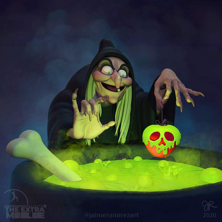 Here is my 3D model of the Evil Queen / Old Witch from the Disney movie Snow White and the Seven Dwarfs. This was done for The Extra Mile Student Challenge. Modeled in Zbrush, rendered in Keyshot and composited in Photoshop. Happy Halloween!