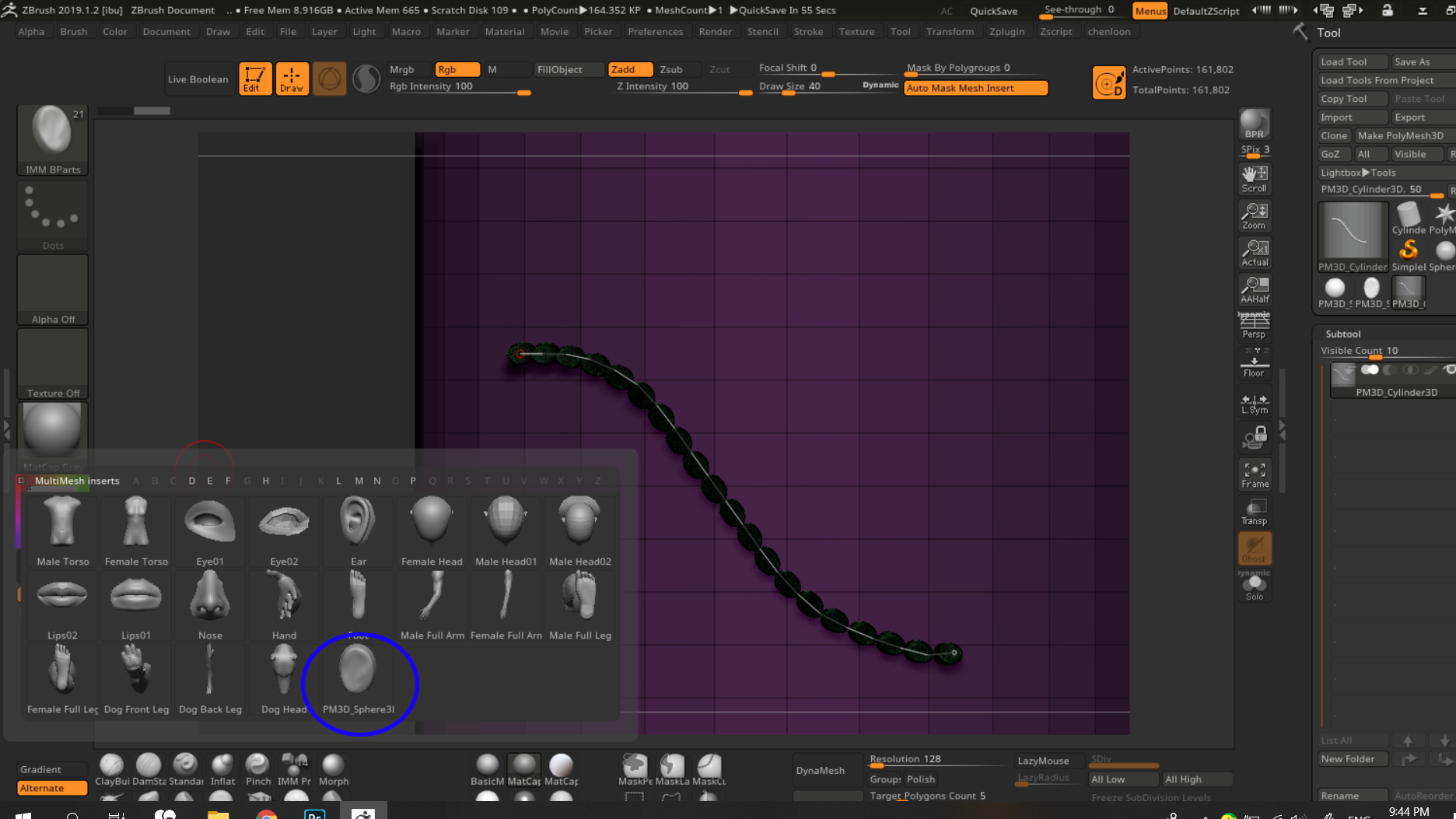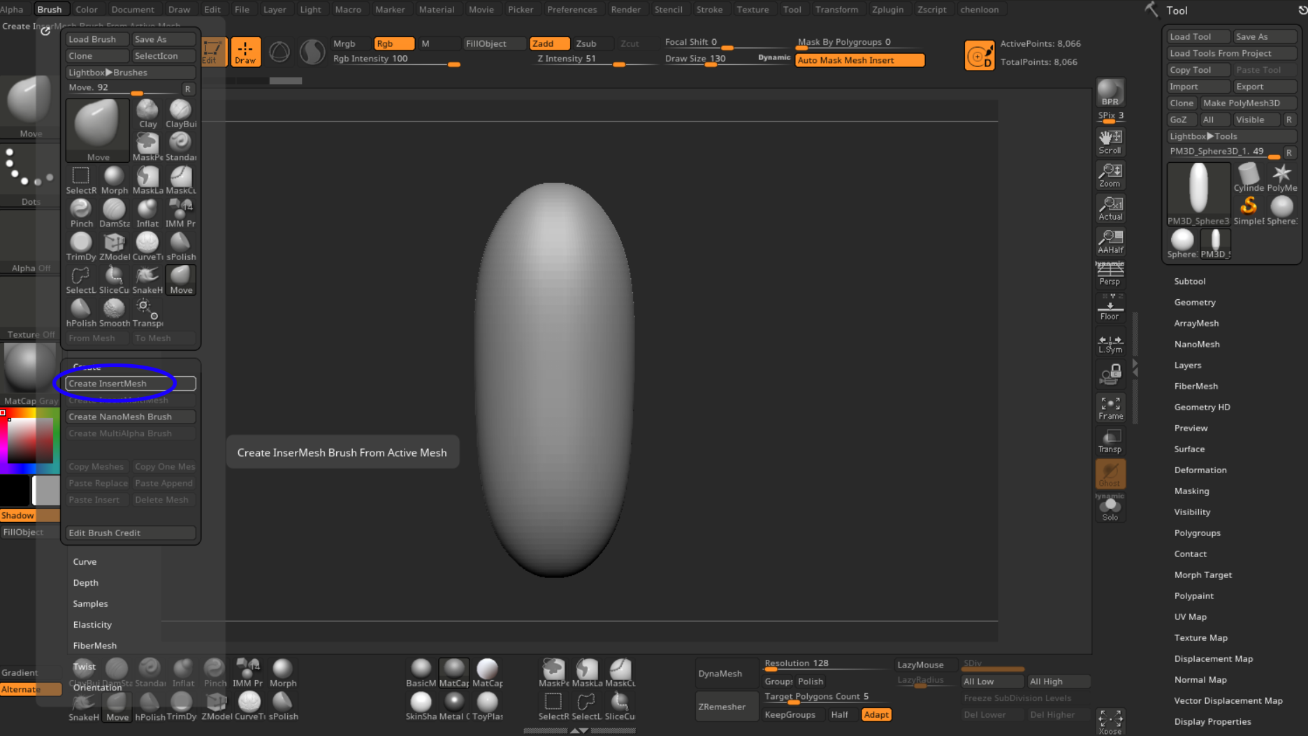 Hi, zbrusher, I supposed to create an InsertMesh, when I click the create IM button, although the brush icon show InsertMesh, but it actually a zModeler brush, and I can access the zModeler menu by pressing space. the IM I drag out on the surface, cannot be edit, it dosent have poly frame either, it just a normal nanomesh, the IM cannot use in curve mode also.