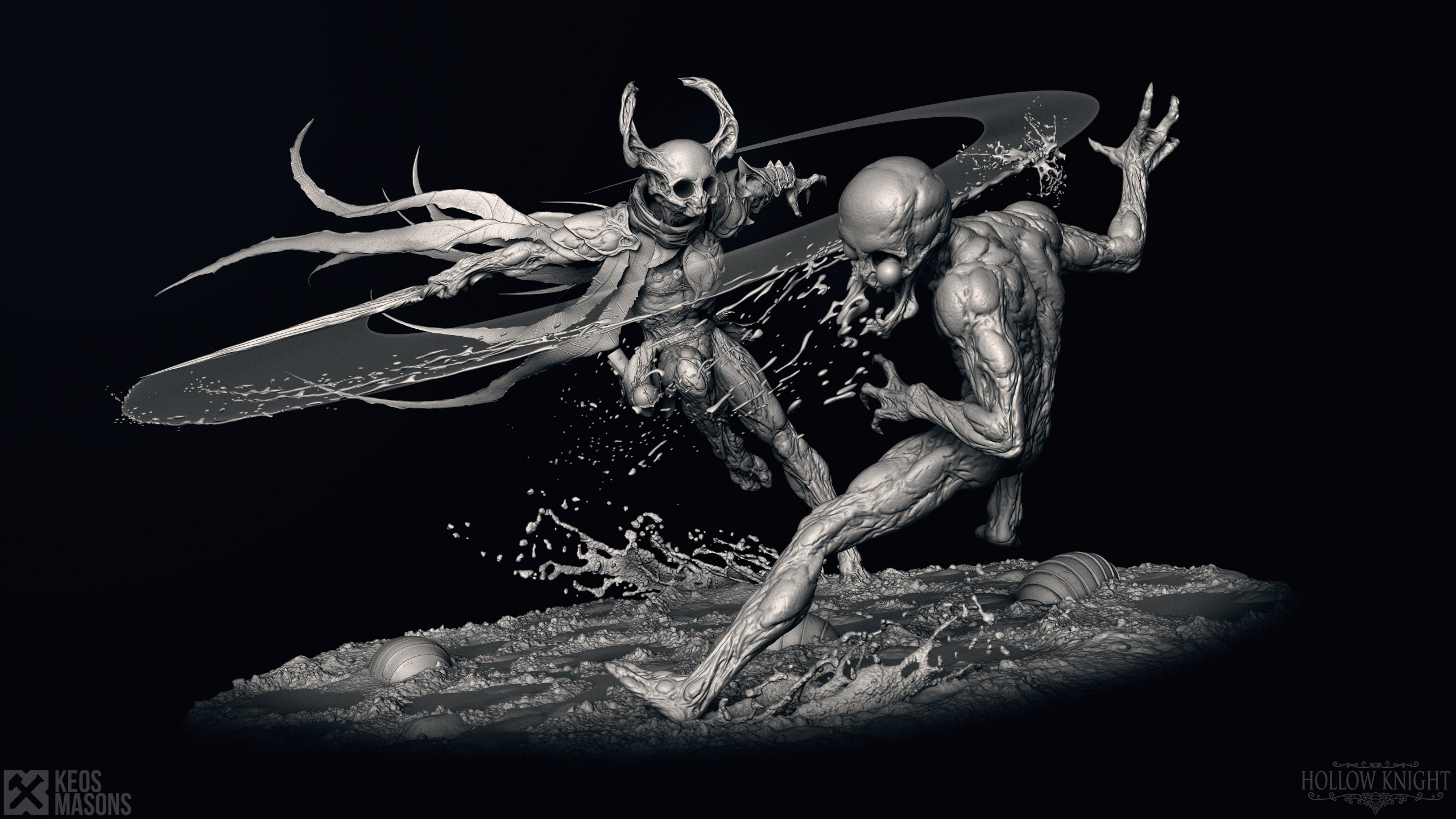 Here’s an static action scene from a 3D interpretation tribute of the protagonist of the game Hollow Knight by Team Cherry.