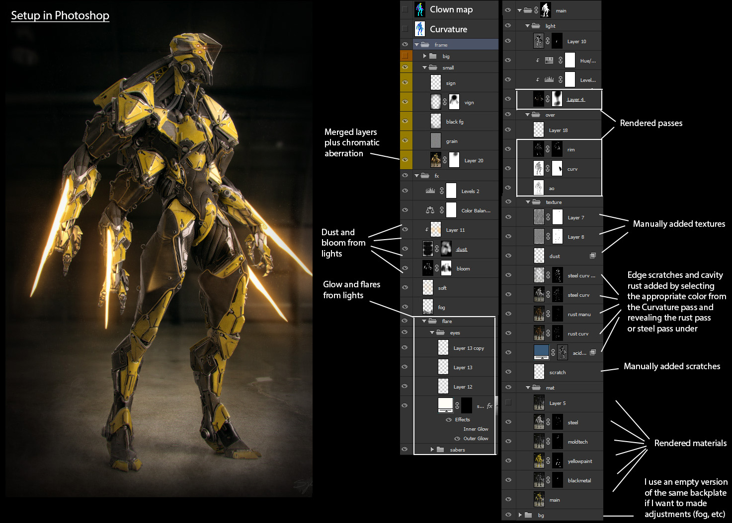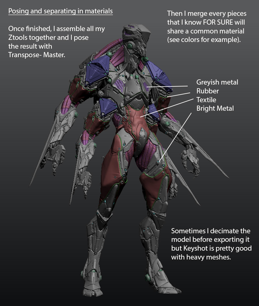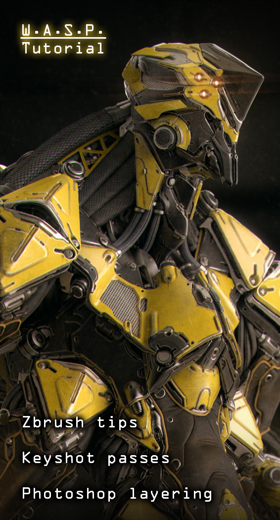 Here’s a Keyshot render of my W.A.S.P. Zbrush sculpt with some post-prod texture and effects in Photoshop. If you guys are interested, I’ll be showing a couple of polishing tricks at the Zbrush Summit 2015 and also giving a design workshop with Cedric Seaut under our company Keos Masons. You can see our portfolio here: www.keosmasons.com