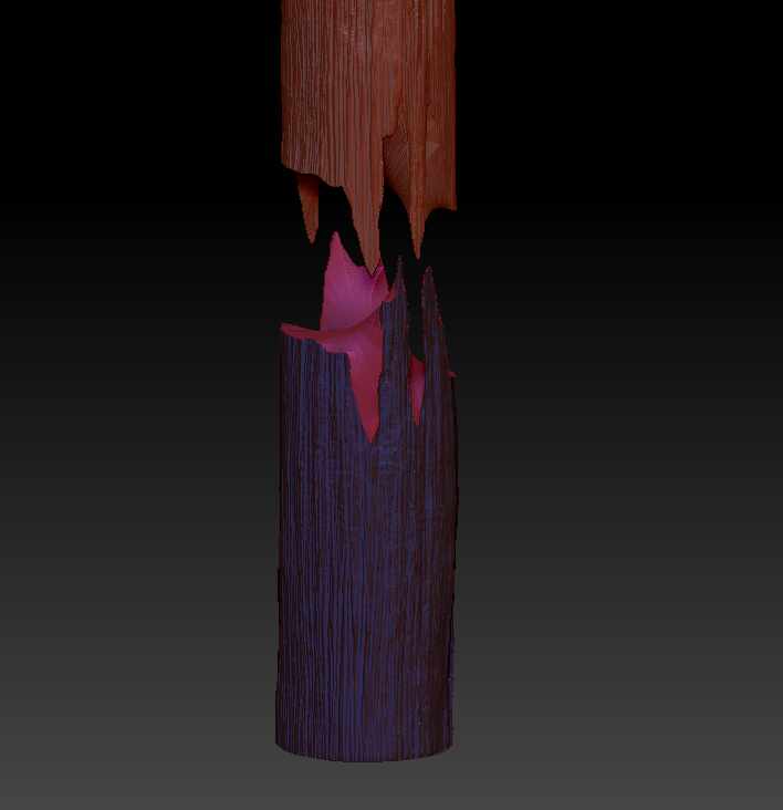 This is because it will be easier to cut through and create the “puzzle” edge for the bark if it is a hollow cylinder and you won’t have the interior fill complicating your cuts. This will require more set up, but it will leave you with a more easily controlled bark component and a mechanically precise interior component that fits together perfectly and firmly. Creating these as separate pieces then recombining them will give you more control over each.