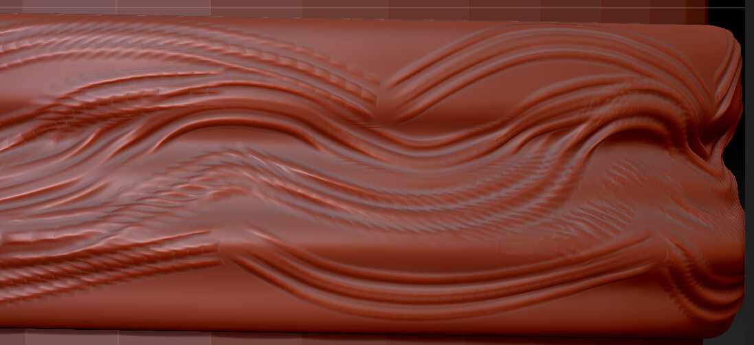 The following image shows the Rake Brush on the left used at the program defaults on a grid that has been subdivided sufficiently to capture the detail cleanly. On the right I have enabled Lazy Mouse, which will give you even finer control. Reducing the Lazy Step to a minimal value will produce the smoothest, least broken stroke but all of the above factors still apply. I have also chosen a material with a more diffuse appearance than the Red Wax.