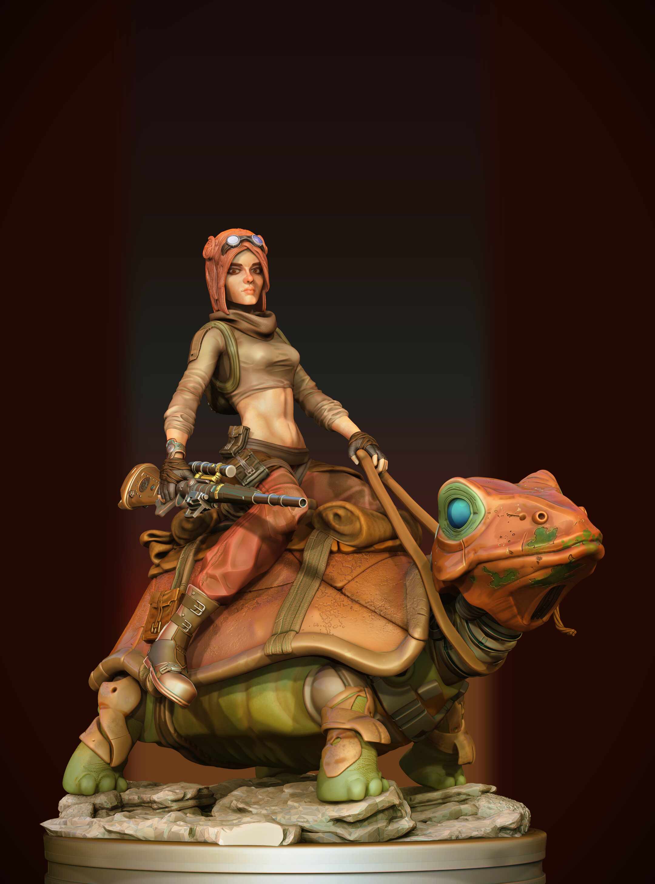 All modeling, character posing, rendering and final compositing was done in Zbrush, using Krita only to add the shadow pass, occlusion and gradient background.