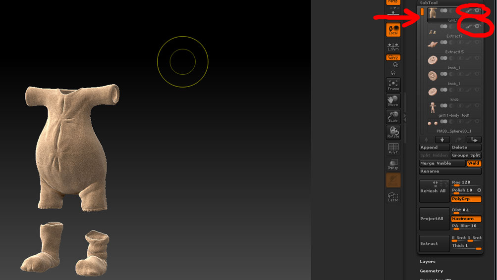 So I start with the first two subtools - everything else is not visible (EYE disabled)
