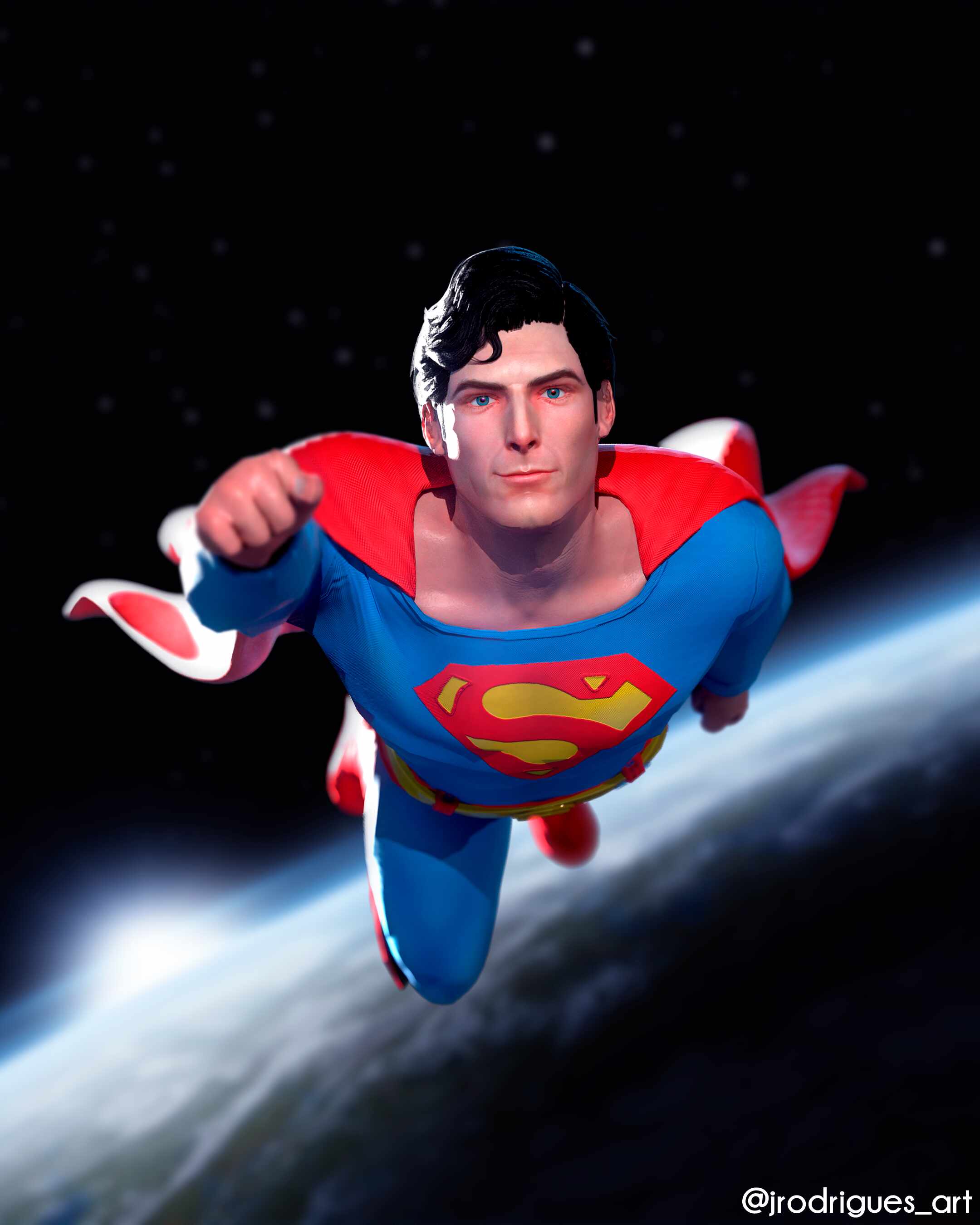 I have a few problems here. The feet look like they are from a 3D scan, not sculpted. In the flying image, it looks like his arm is broken. Please refer to reference images for this. The arm in this pose is not just rotated forward; the shoulder also moves.