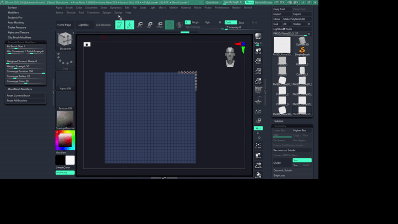 Additionally, the Zmodeler Bevel feature is not designed to work with 2D geometry. In order to get the expected results on the edges you would need to extrude the plane into a closed 3d volume.