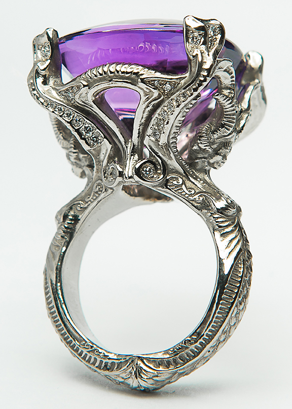 Its Palladium with a 30ct electric purple amethyst and diamonds