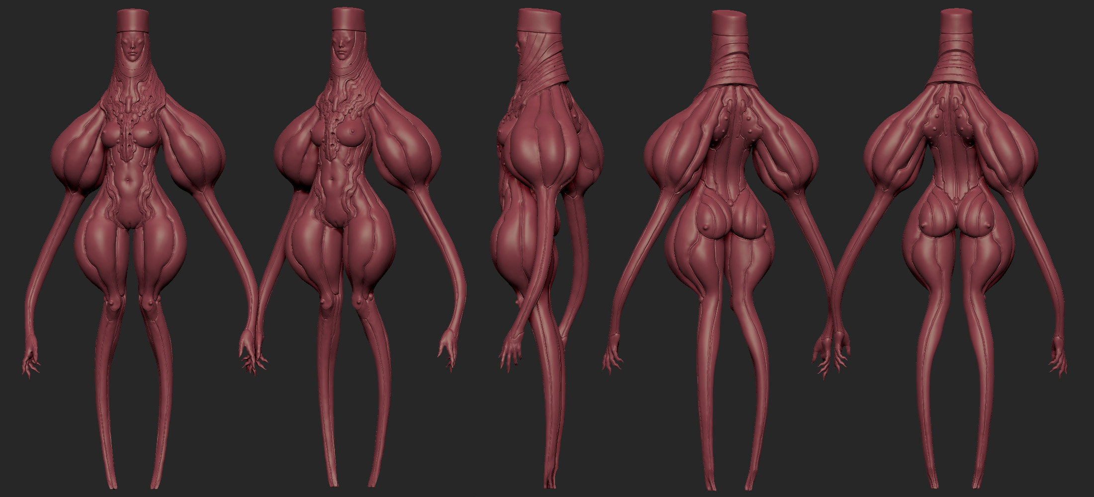 Very interesting forms and shape language, Tanoo. Your character work is very evocative of a specific world. I’d like to see these characters in an environment you create. Has anyone ever introduced you to Zdislav Beksinski?