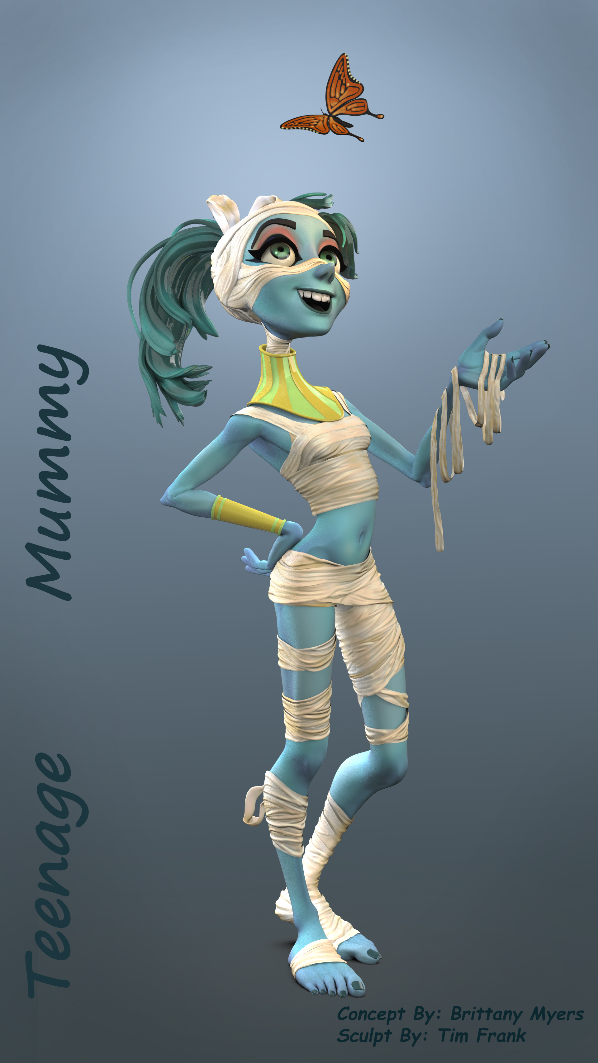 It’s been awhile since posting here. Here is a Teen Mummy I did as part of Shane Olson’s 3DCharacterWorkshop. Just a fun project for the upcoming Halloween season. I hope you like her.