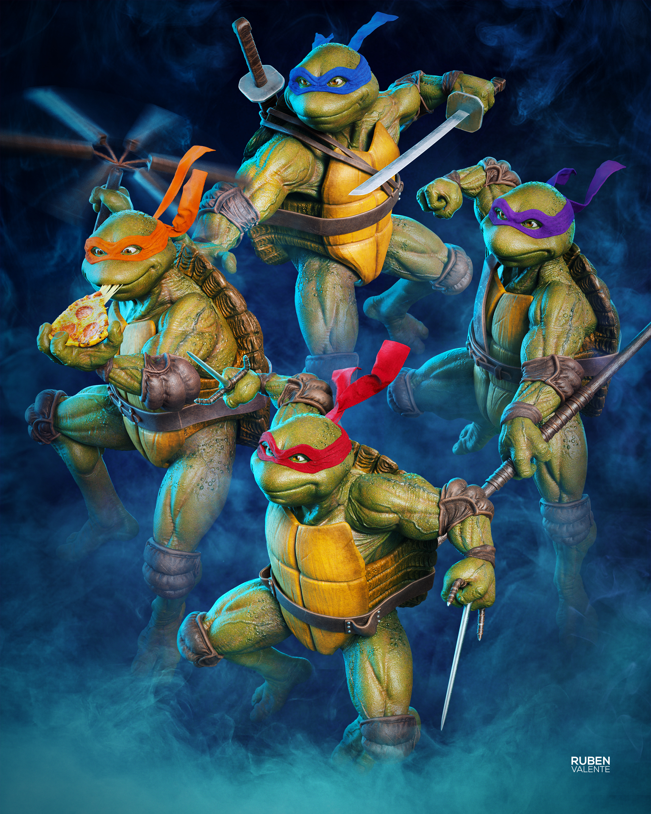 The illustration was done to commemorate the 30th anniversary of the movie of the ninja turtles. I did a take on all the turtles, I present you the Gang!. Special thanks to @Milton_Fernandes who was my brother in arms on this project and worked on the villian, Evil Raphael Shredder character.