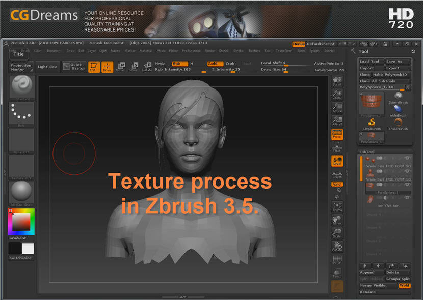 This video is aimed at new users to Zbrush, or anyone that wishes to watch anyway. There are two versions. One is slightly downgraded quality for Youtube streaming, while the other is at full HD quality.