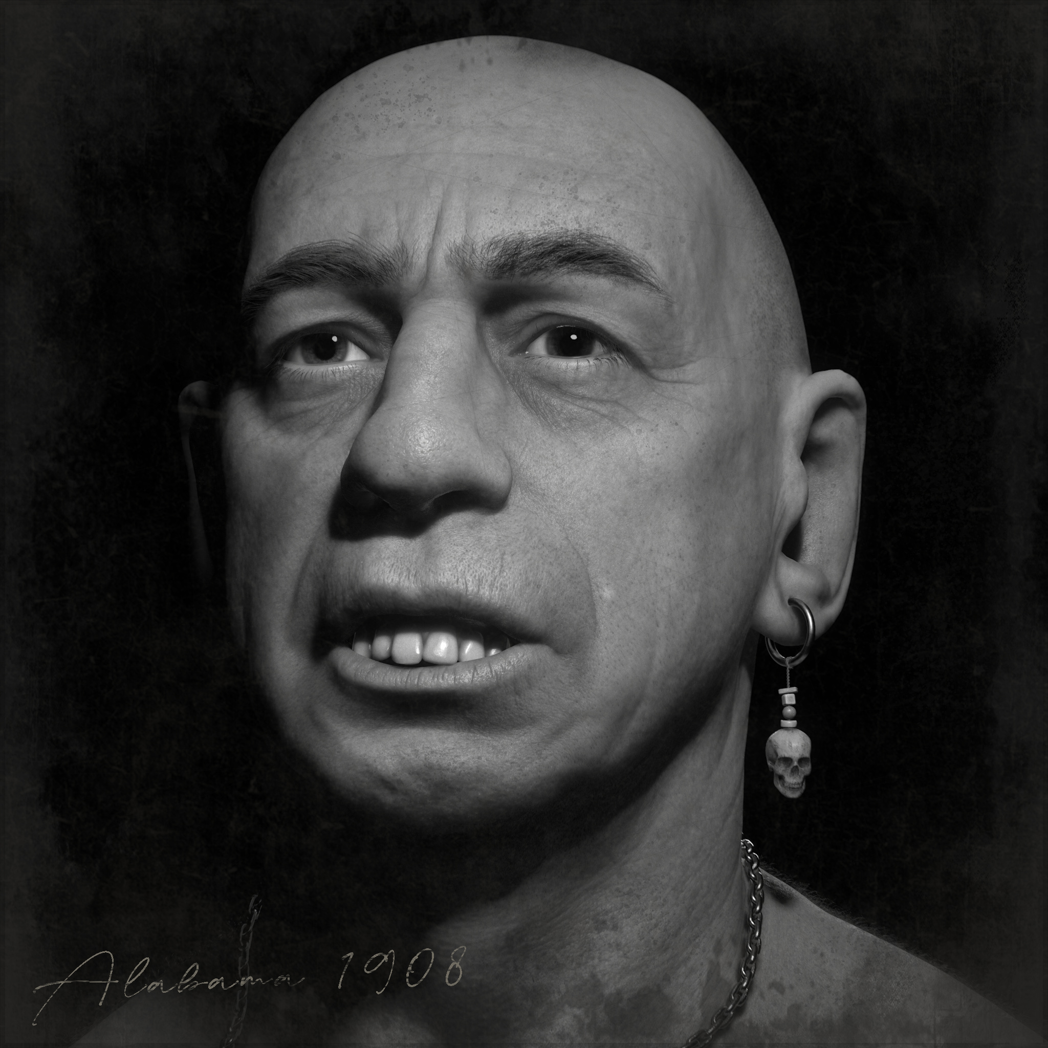 Sculpted the base mesh in ZBrush from a sphere. Used Marion R. Nunez skin brushes to sculpt pores and wrinkes manually.