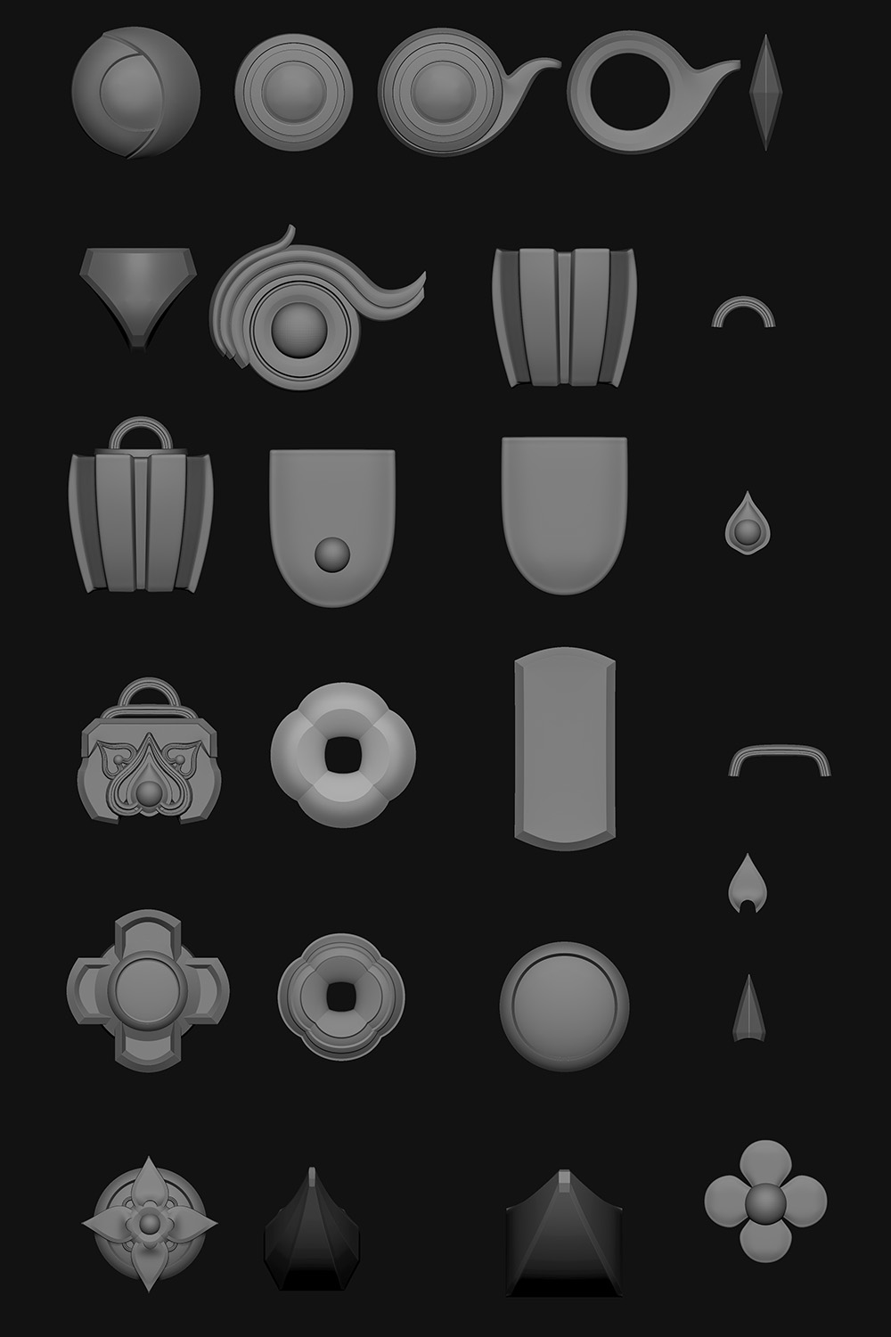 I masked and extracted the parts and used ‘polygroups’ feature to design and sculpt