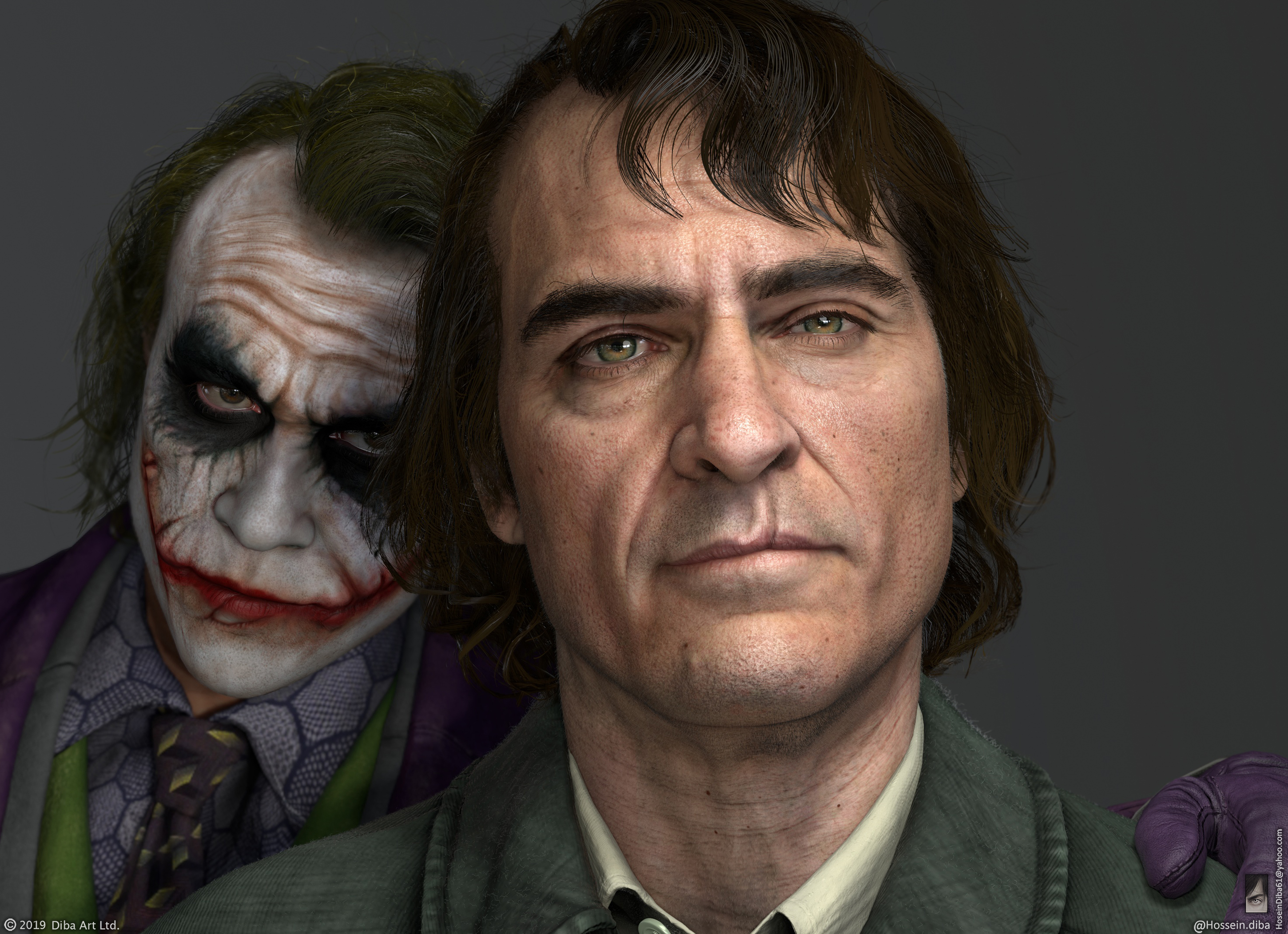 Can’t wait! Here is something I have been doing in my free times. I sculpted Joaquin Phoenix last year when first images of him playing joker were released. Recently I thought I better update my sculpt, do textures&all and put him with Heath Ledger Joker in one frame! How awesome is that? I’m sure Joaquin can pull it off as new joker, go get them brother