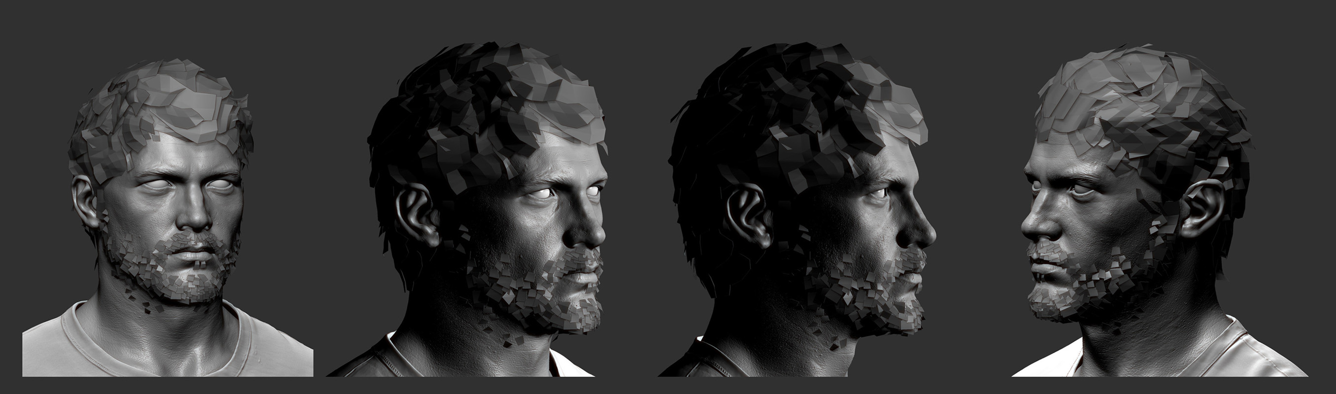 Great stuff. I’d like to hear a bit more about the hair planes and how they were worked out for the in-game models. Were they sculpted at all? I notice there were separate versions for the print version. I cant imagine they were just laid out as cards as is, that would have been hellish!