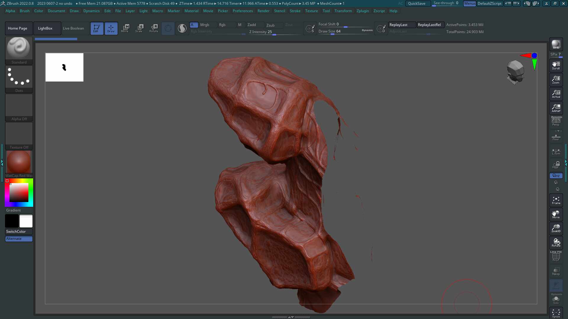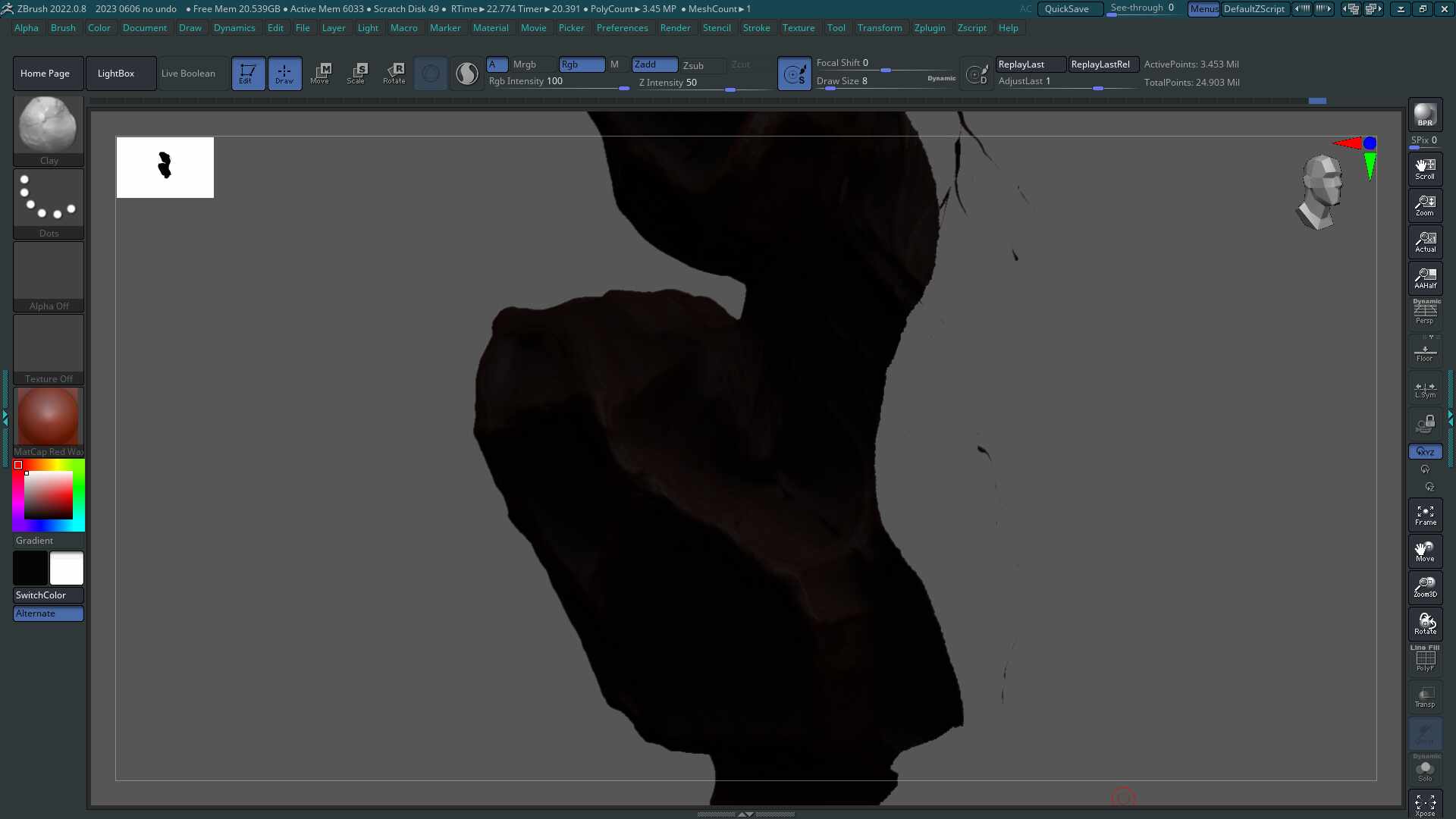 If the dark render issue disappears, then your problem is related to the material or material settings for the material that was applied. Your ability to adjust this will depend on what type of material it is. The standard ZBrush materials can be adjusted in their material modifier settings and will respond to the ZBrush scene lighting. Matcaps however have their lighting information baked in, and your ability to adjust it may be limited. If a material you did not create yourself is causing you trouble, I advise simply not using it.