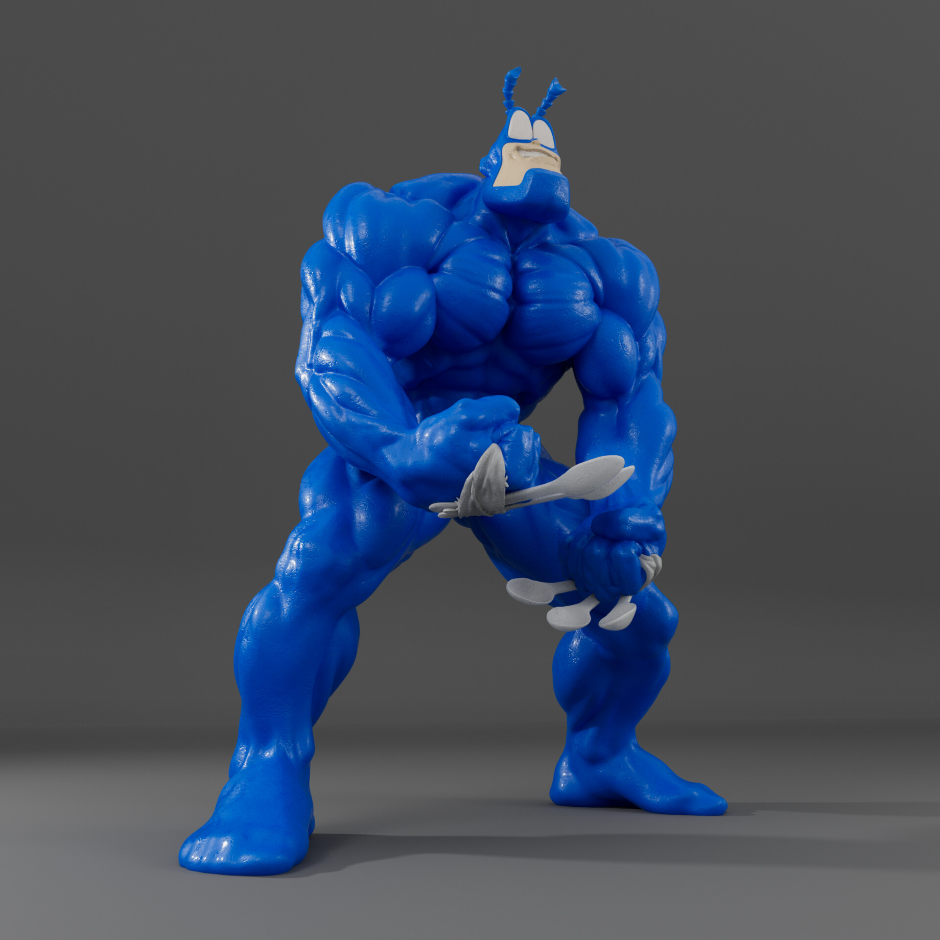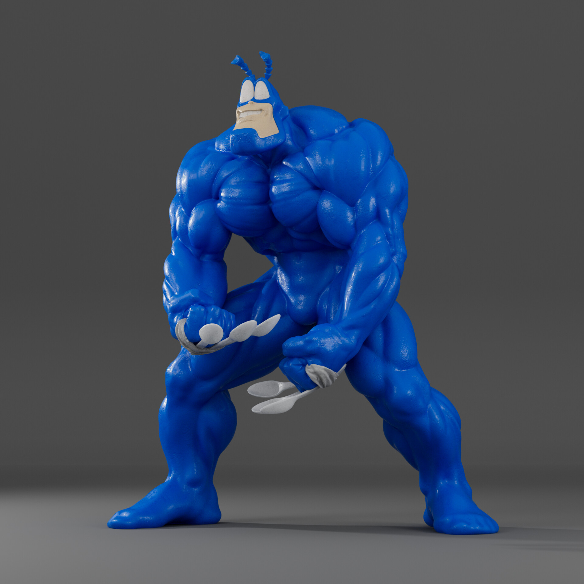 This is awesome!!! What a great render and the textures are clever. I like the nod to Wolverine and Deadpool with the spoons.