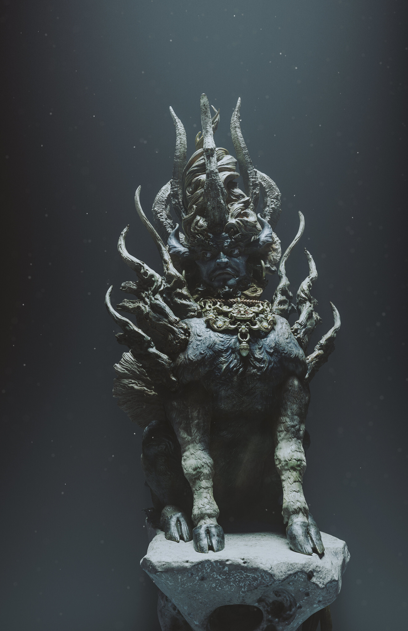 I wanted this piece to be from ancient times, but not limited to ancient times, it was a projection of the tradition of my ancestors, so you can see that I added a lot of modern elements, relatively realistic faces and muscles and so on, but I still wanted to keep the Chinese soul of it.