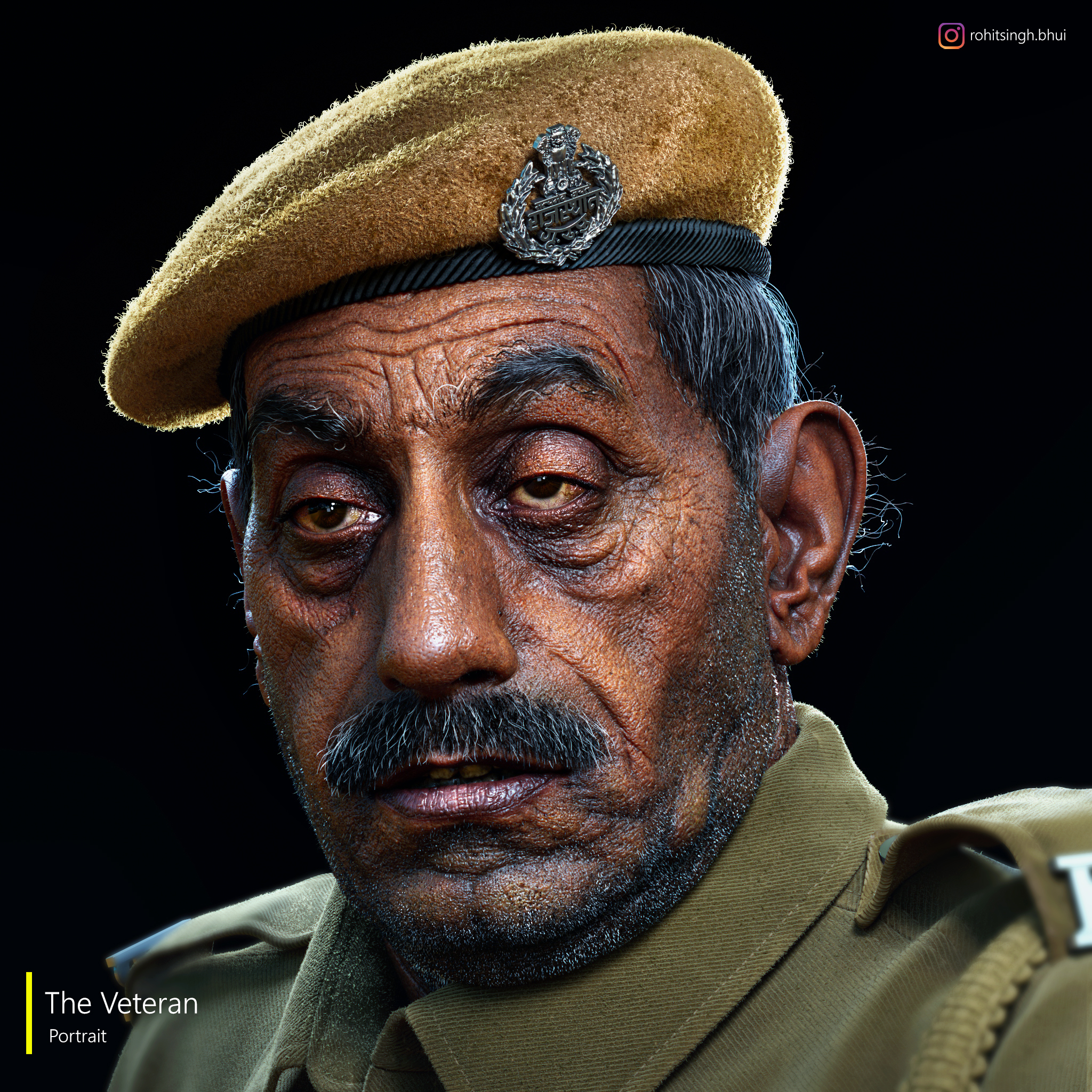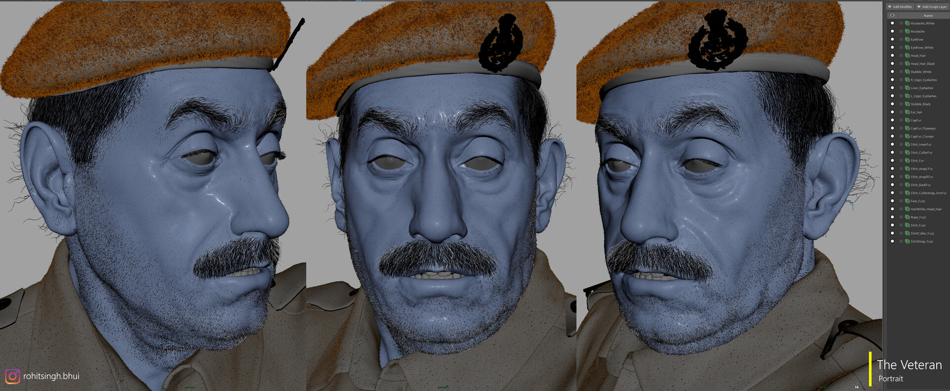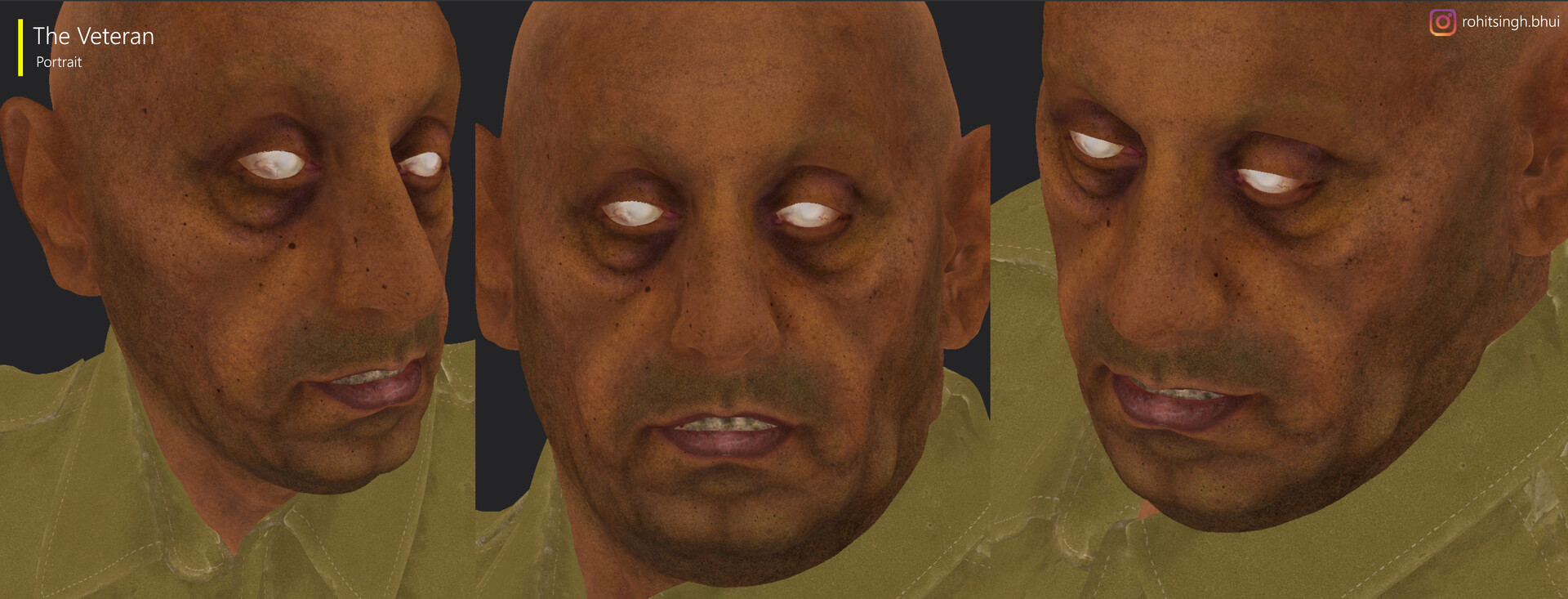 I started this Portrait 5 months ago, working in my free time, I found the photograph on Vicentepeiro insta account, I tried my best to match the reference especially the eyes but I change few things on the portrait, the textures are hand-painted in Substance Painter, skin details are hand sculpted using zbrush default alpha’s, Used Interactive Xgen and Arnold for Skin shading and Rendering.