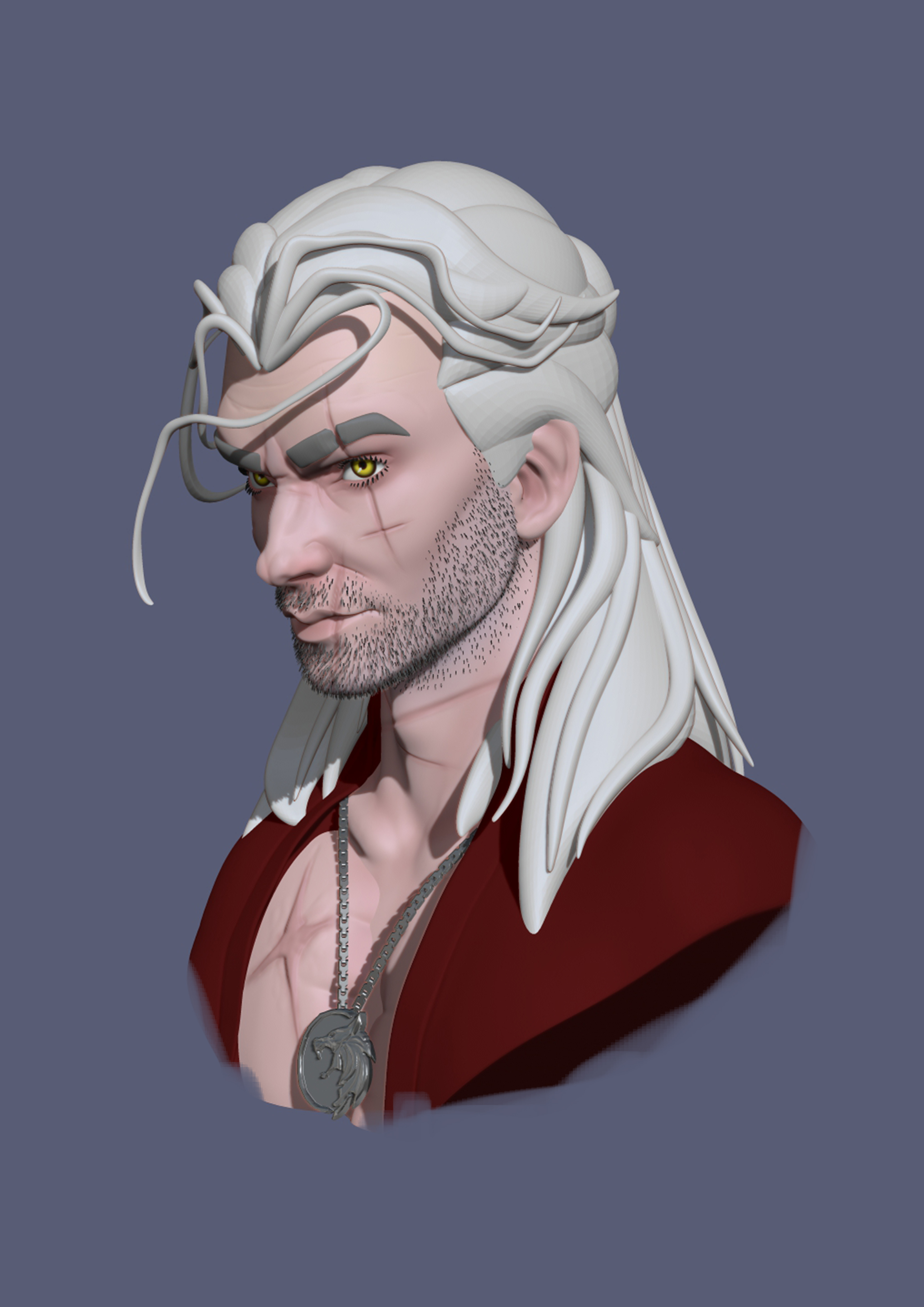 Was inspired by Henry Cavill’s Geralt, I wanted to combine his features as well as the Geralt from the game. Think I’ve found a nice balance between to the two!