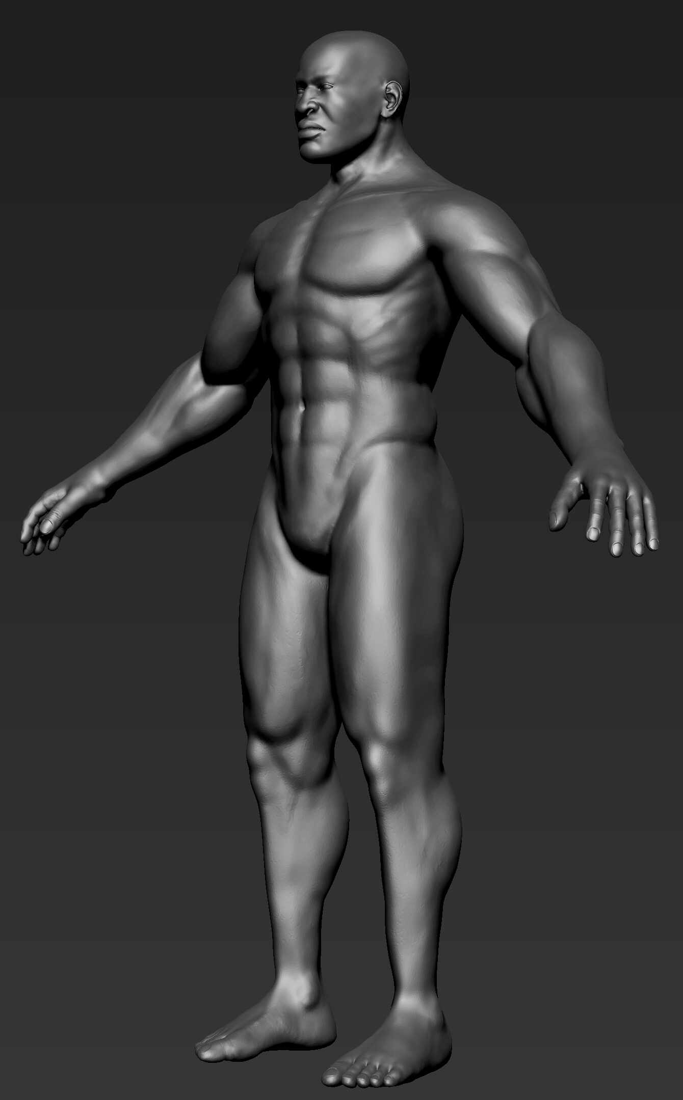 For the last week or so off and on, and watching videos of other ZBrush artists using the blockout method to buiild characters, I took a crack at it and I really enjoy how so much easier it is to build a full figure without the headaches of topology. On this figure, I am going for a lean athletic build similar to what you would see on a soldier or a boxer and going with that. The main purpose for this exercise is not only practise, but also to build an animation ready topology on top of this character to be used for ALL of my characters (I will be using ZWrap for this process).