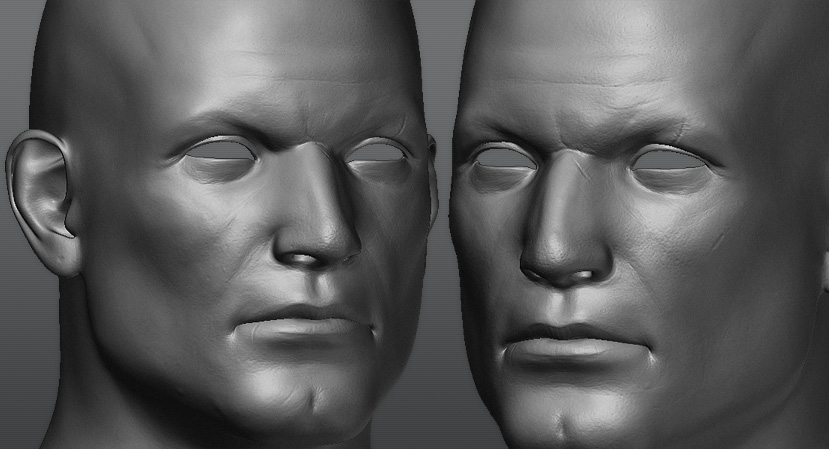 Any displacement intensity problems (i.e. stuff looking inflated) can be balanced with the Alpha intensity slider in the Displacement Exporter in Zbrush. Does this seem right?