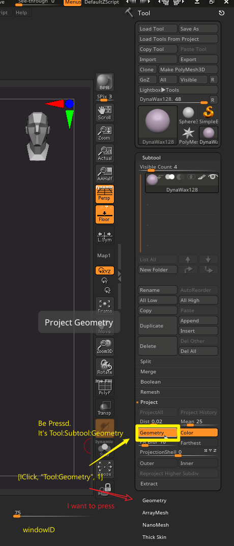 In this way, Tool:SubTool:Geometry will be selected.