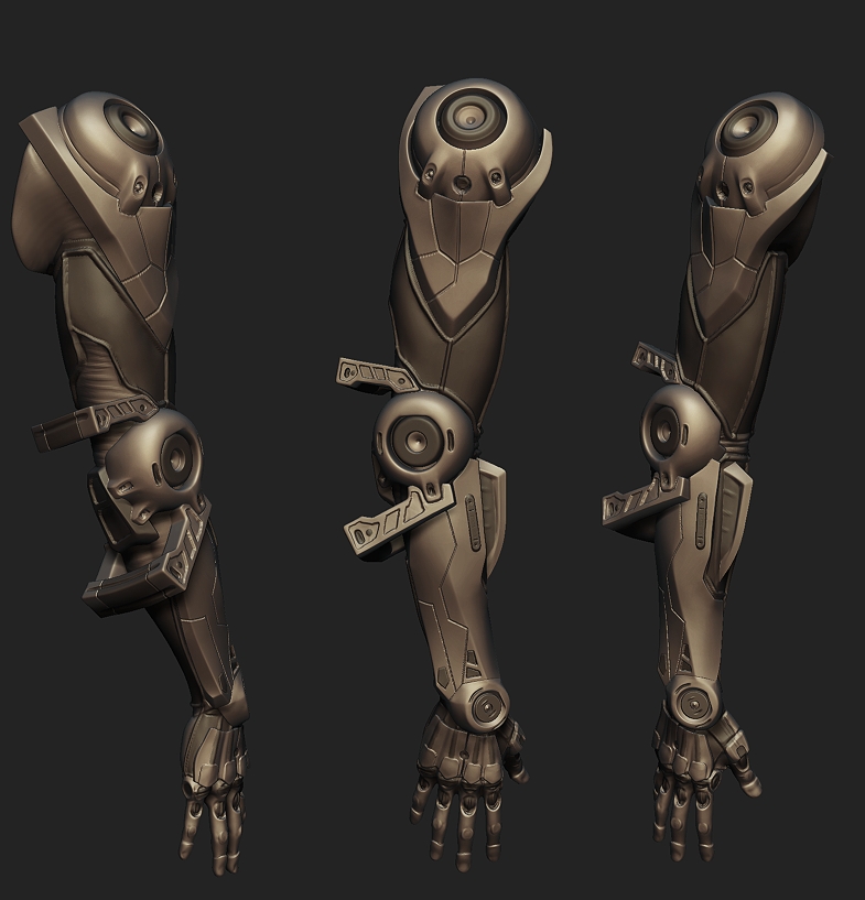I really like the arm’s design, hard surfaces in Zbrush are pretty difficult!