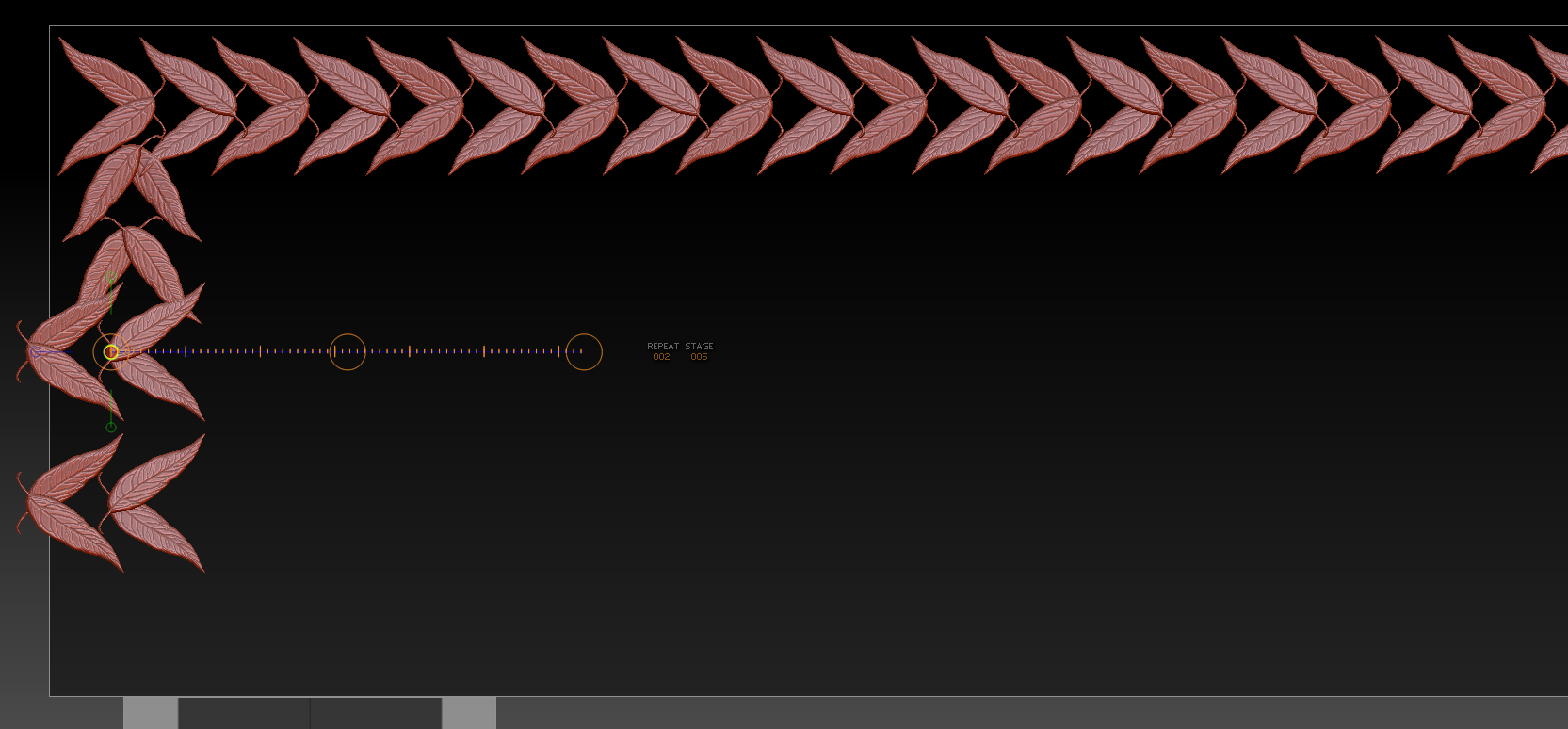 I’m making a decorative border for an object I am making (image below). I started with a single leaf, then went to using array mesh. Stage one, I mirrored it over, rotated, and offset it. Stage two, I offset it and mirrored the previous result. So far so good. I had the base link in my chain. Stage 3, I offset and repeated it one pattern short of the edge, I created a new stage, selected ‘chain’, added a second repeat, and rotated it. Good so far, I’ve made it across the top and the edge. But stage 5 became a problem. Clicking ‘chain’ I found it continued to rotate the next leaf set, which I can’t figure out how to rotate.