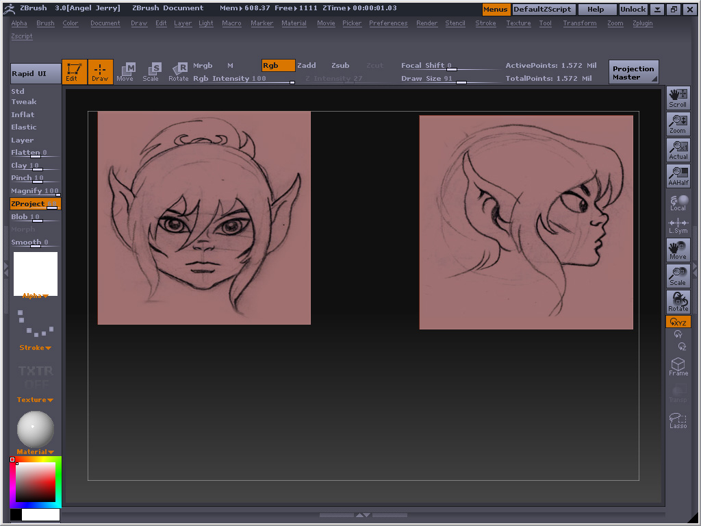 Hello everyone- A while back after watching the Next step video I always was curious how to use that imagecube the way it showed on the video for the concept sculpt part. I didn’t see the info anywhere or on the wiki so I watched that part of the next step video over and over coupled with looking at the Z-Project tut by Sebescoir Igraine (may be mis-spelled) helped me figure it out. So I thought I’d post what I found. (Texture image ref used in tut by Wendy Pini of Elfquest Series)
