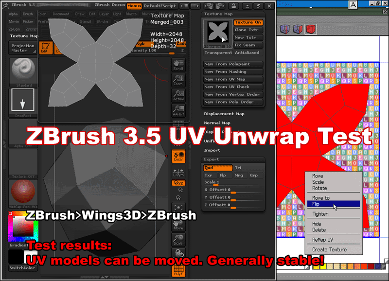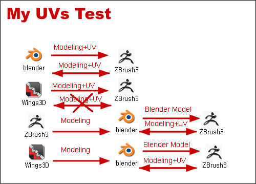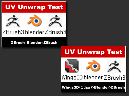 ZBrush 3.5 and Wings3D UV Test result: UV models can be moved.
