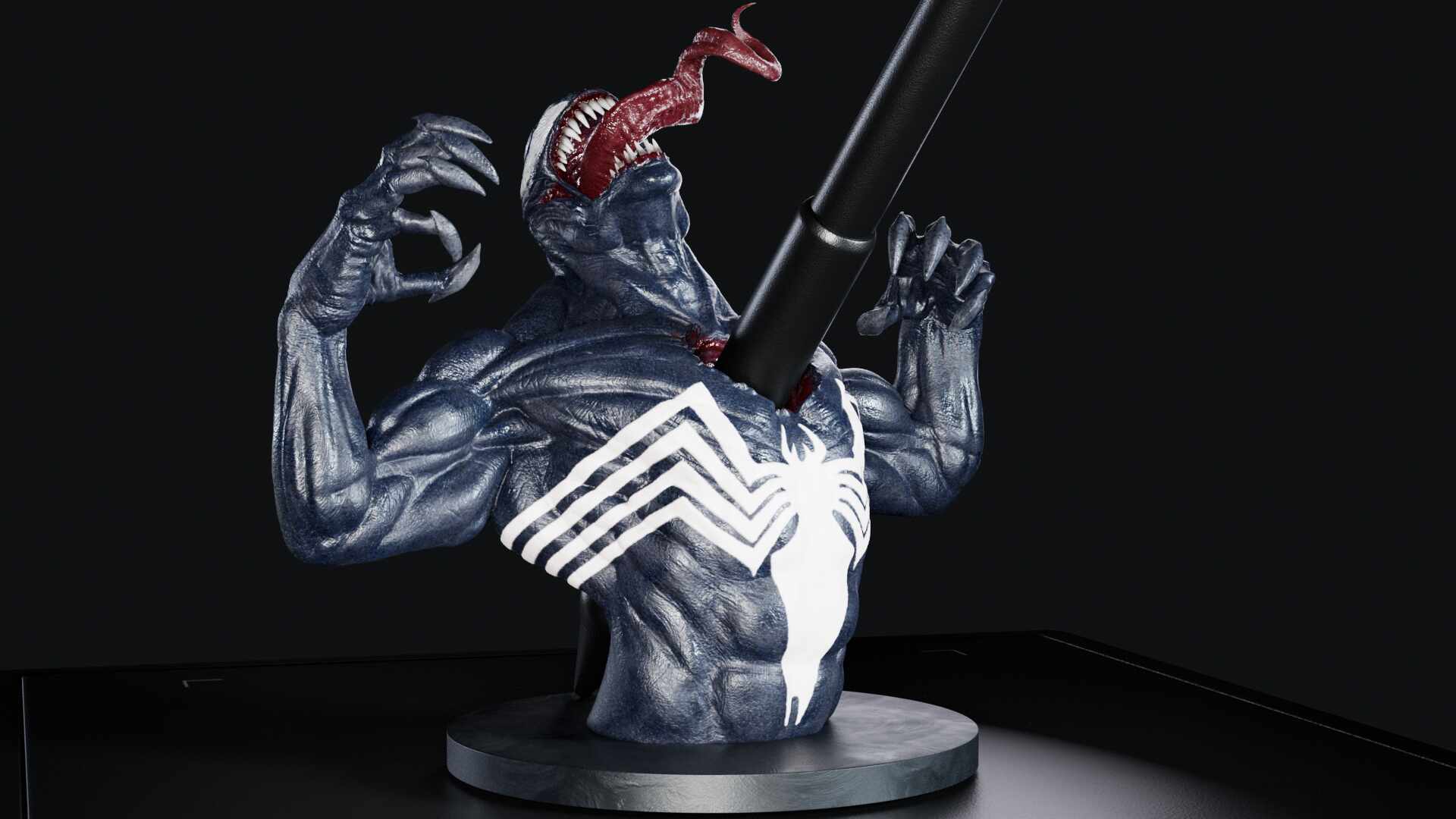 Venom Fanart Penholder. Two day sculpt that started as a fun exploration of Venom’s head, might as well put it to good use.