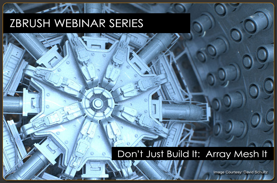 The Array Mesh feature offers a unique instancing system that makes it possible for you to experiment with elaborate scenes while maintaining a low polygon count. Released as part of ZBrush 4R7, the Array mesh system can duplicate a single piece of geometry as many times as needed, and in boundless configurations. This workshop focused on how Array Mesh can be used to build elaborate landscapes, as well as for adding that last bit of detail to accessories, weapons and small props.
