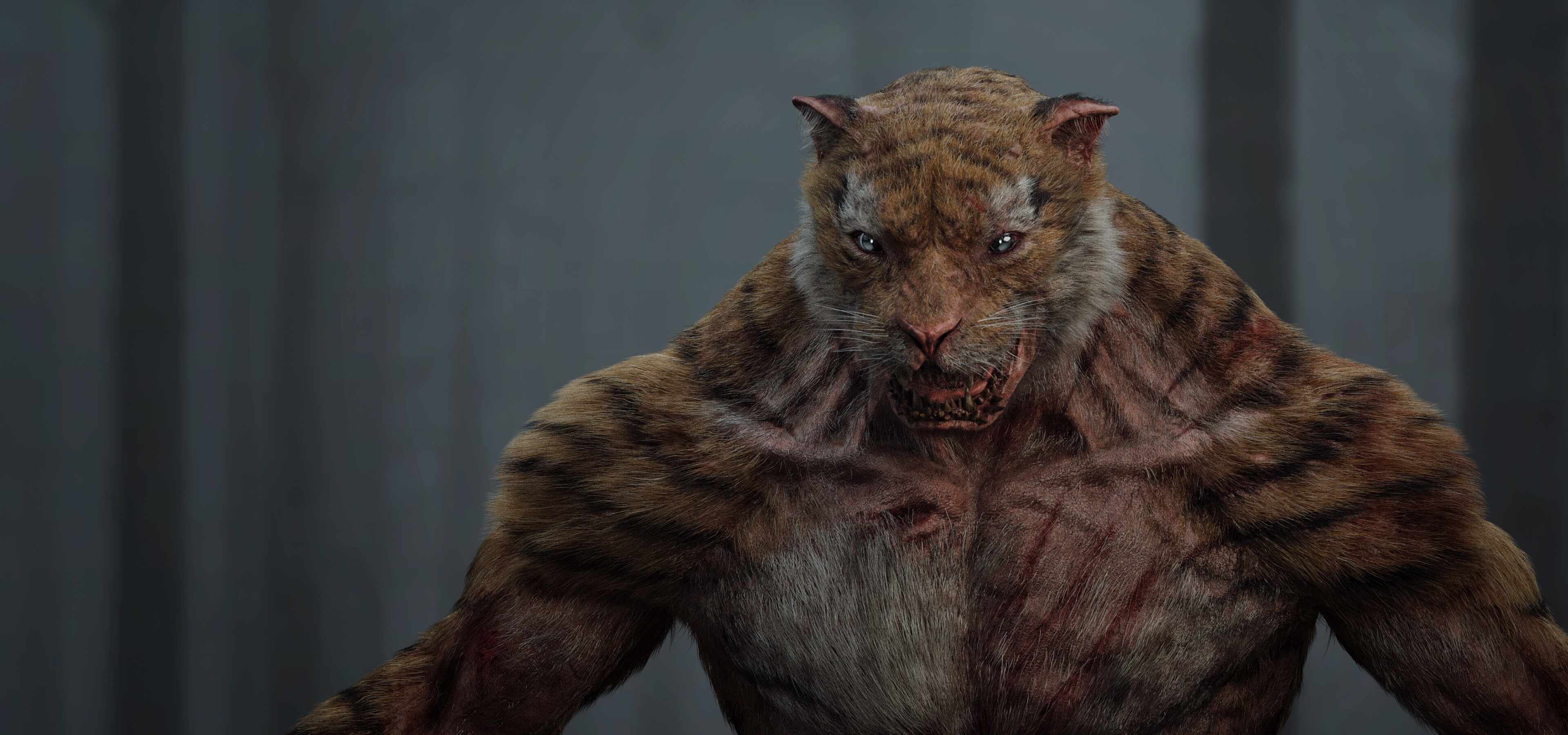 I was mainly responsible for the sculpting, texturing, grooming of the weretiger.