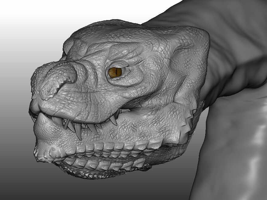 Well surface details can be in different forms, but in your case its mostly scales and lizard skin. i recommend following Dan Katcher’s workflow from one of Zbrush summits. it was something similar to this: