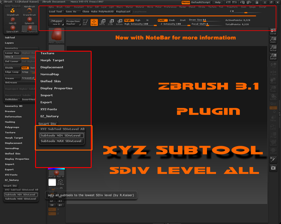 It includes two new buttons “SubTools MIN SDiv Level” and “SubTools MAX SDiv Level”.