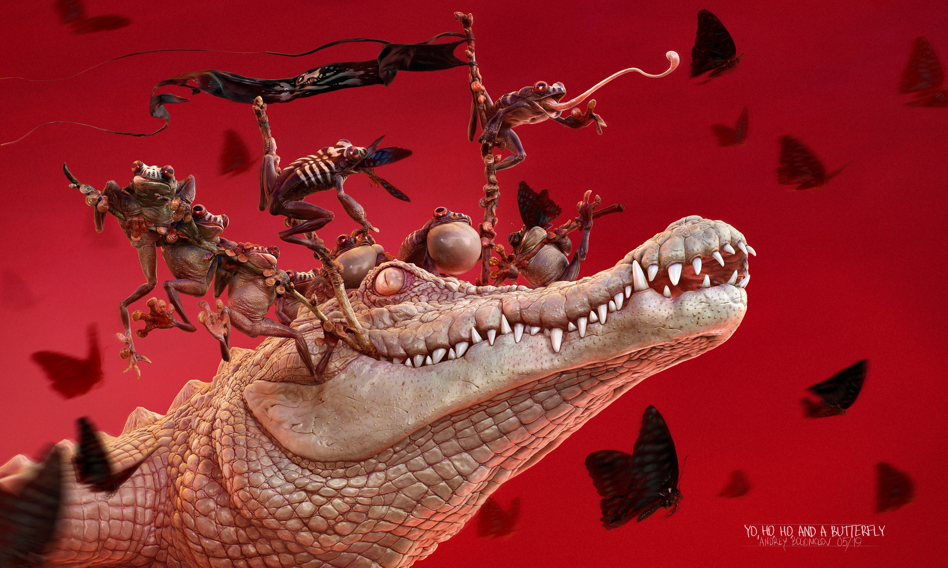 Having fun with Zbrush and BPR Render. Did this thing for my kids. Frogs pirate gang are catching the most delishes thing - black butterflies on theirs “albino crock ship”. Don’t even ask me what a deal between them, scarry story.