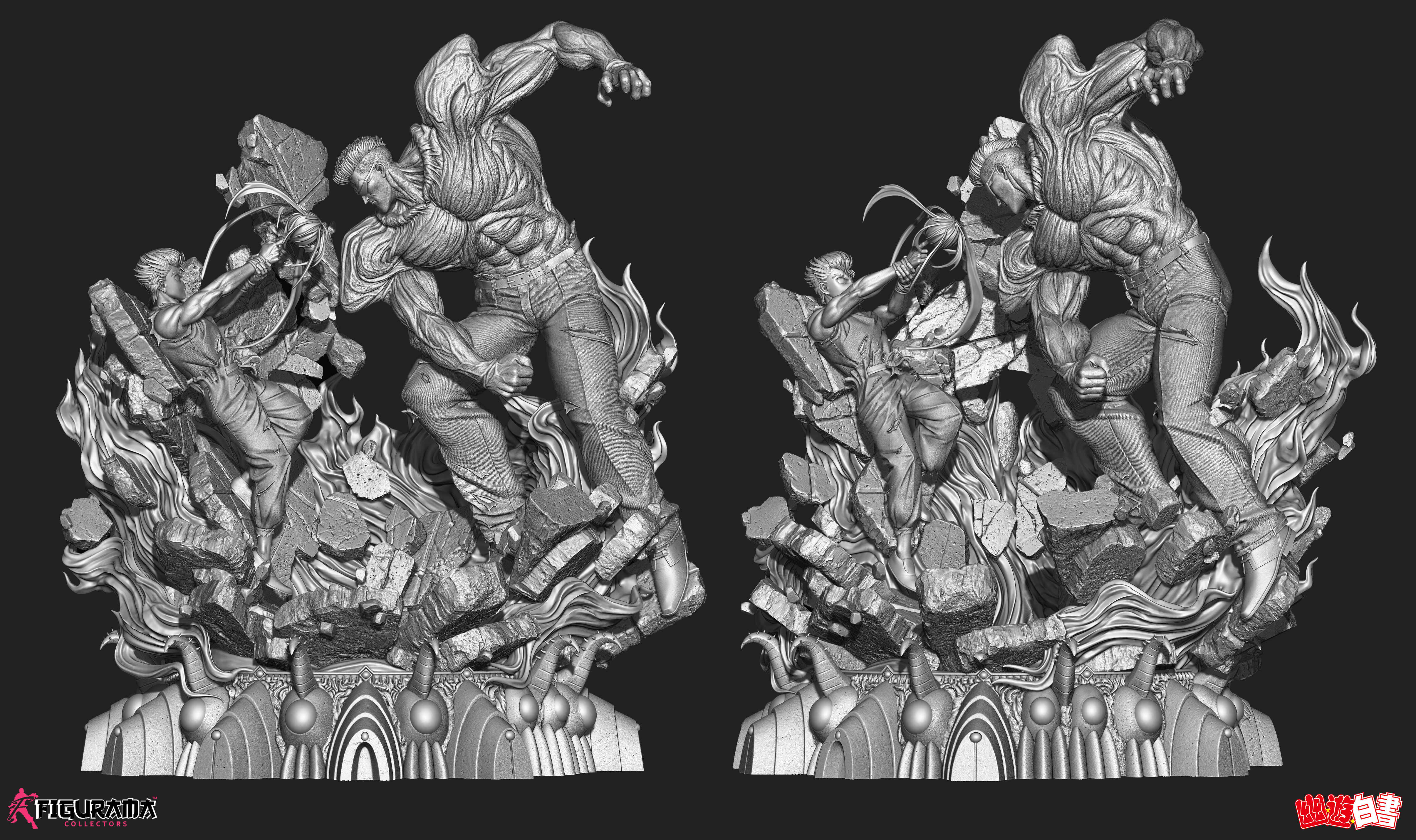 Ok! It’s time to remember and show more about this project, Toguro vs Yusuke in YuYu Hakusho, one of the first pieces I sculpted for Figurama Collectors in 2020. This is a render, not a photo of the final product. During that period, I was anticipating the licensor’s final approval. I found the project very rewarding as it was filled with intricate details since I am passionate about working on anime projects