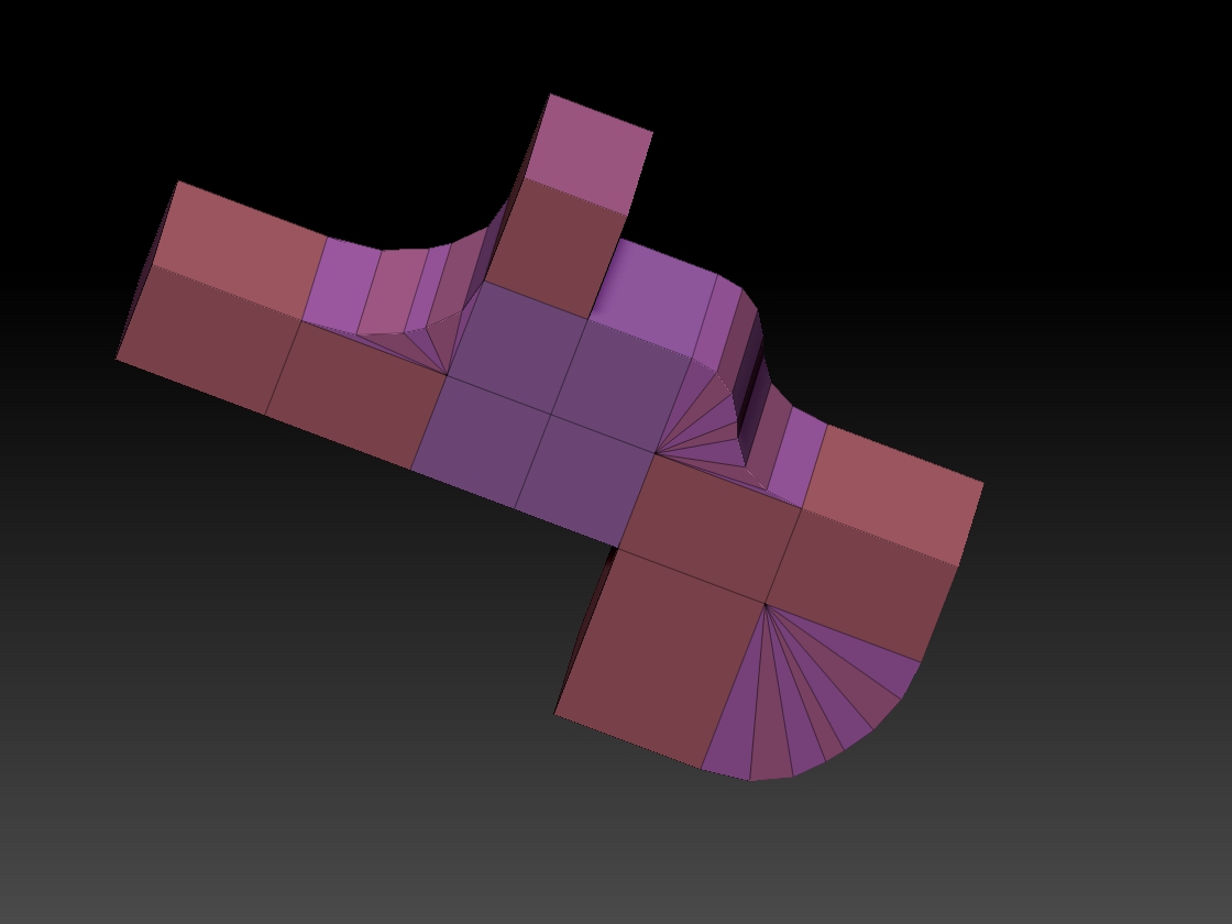 Neither the angle or the resolution seems to alter the S curvature outcome. And as I mentioned earlier, the S curve occurs on the other bridge actions as well. What is bizarre is that I only have this issue with this particular mesh; working on a different ZModler cube the bridge action works fine. Attached is an image with the desired result.