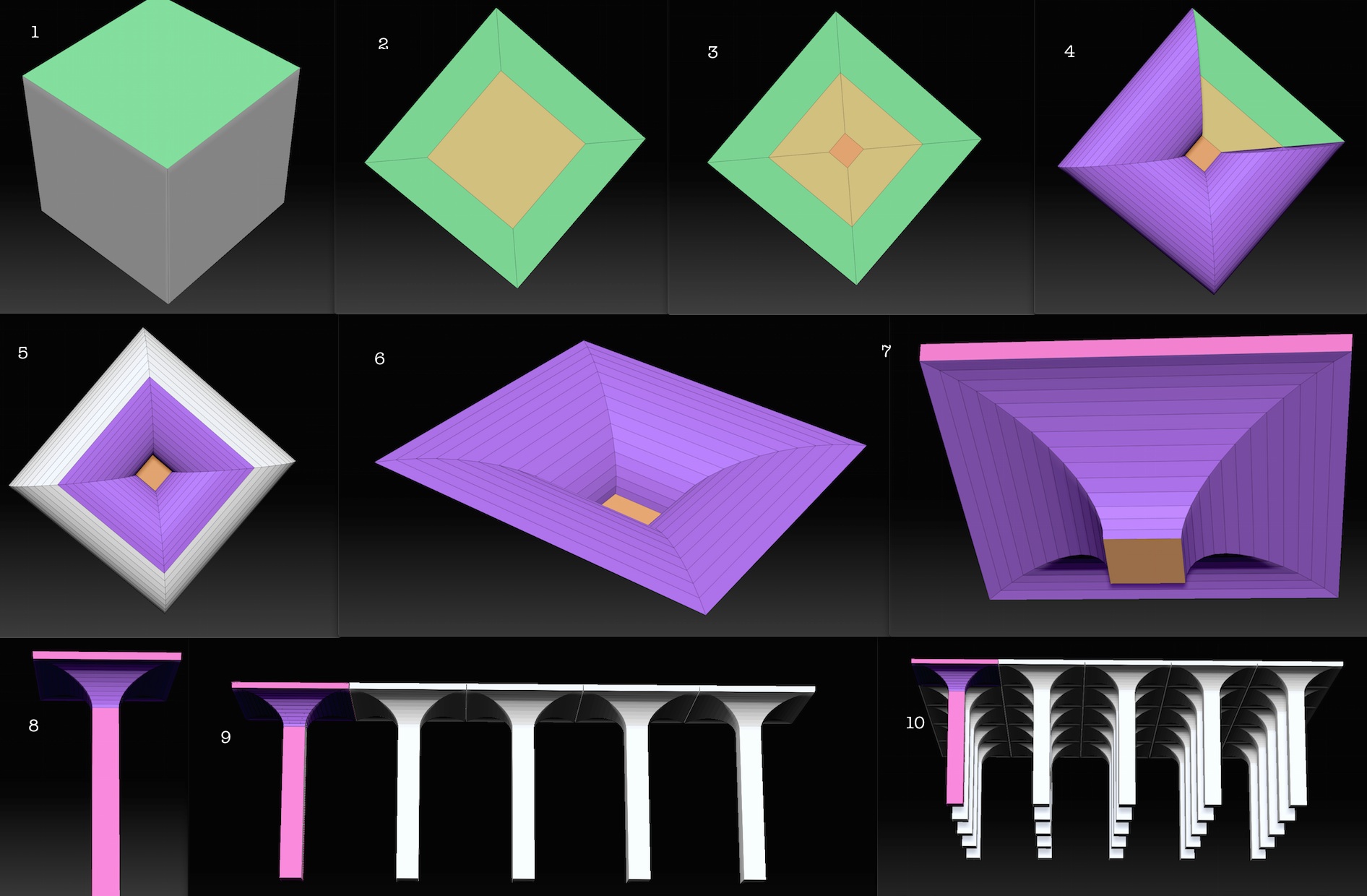 8: Mode Poly/QMesh (Target:SinglePoly): āExtrudeā the centre quad to be the column