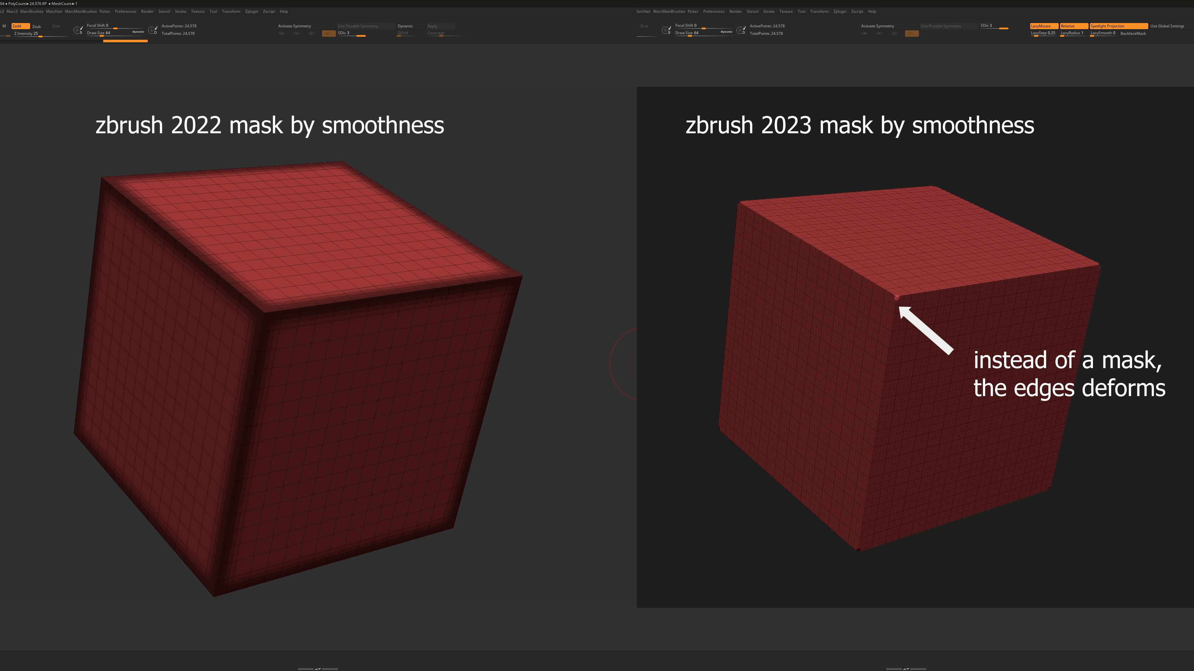 Anyone else encountered this problem? The latest version of Zbrush seems to have broken Mask By Smoothness- it no longer creates a mask but will randomly reform parts of your mesh.
